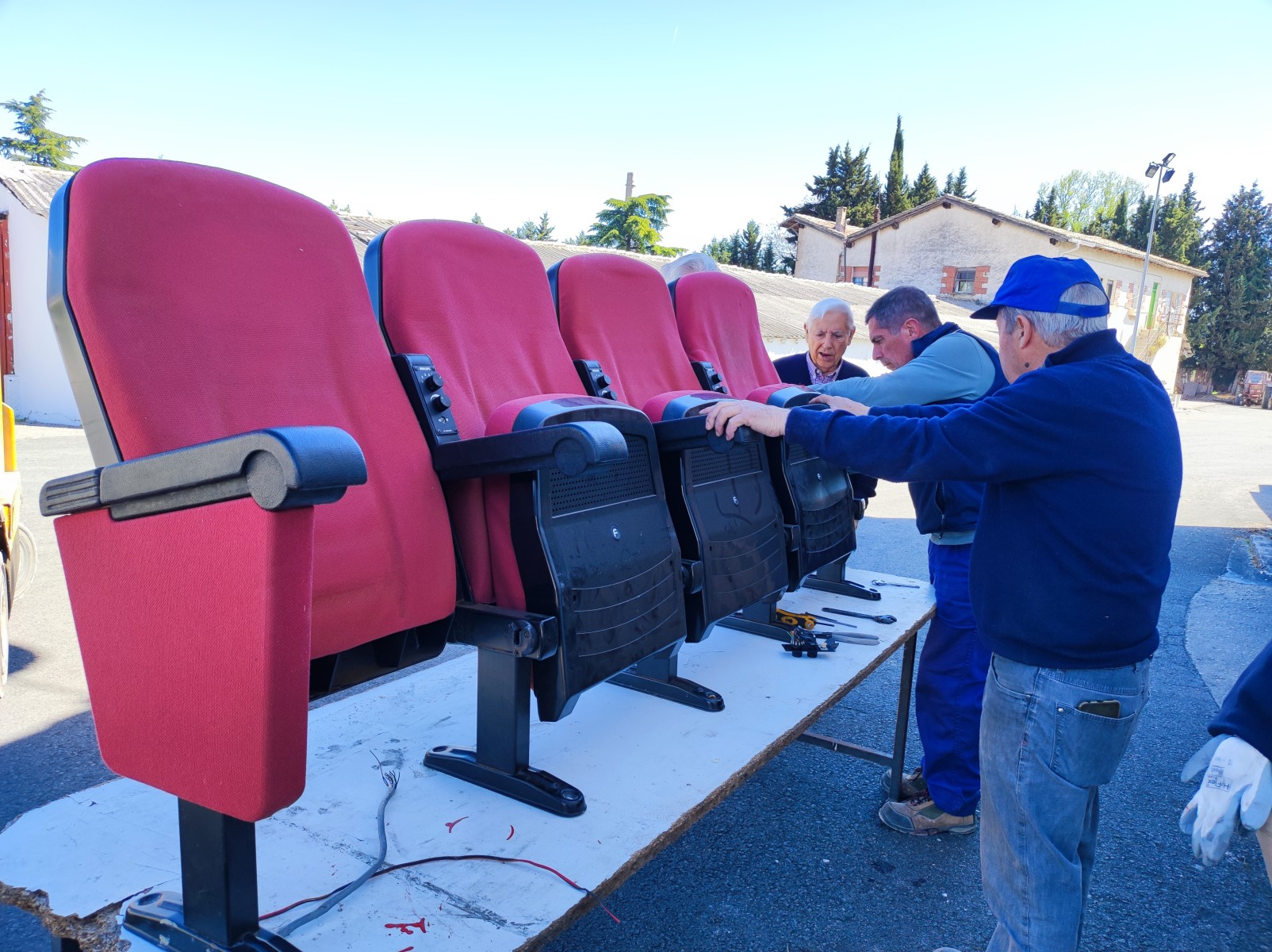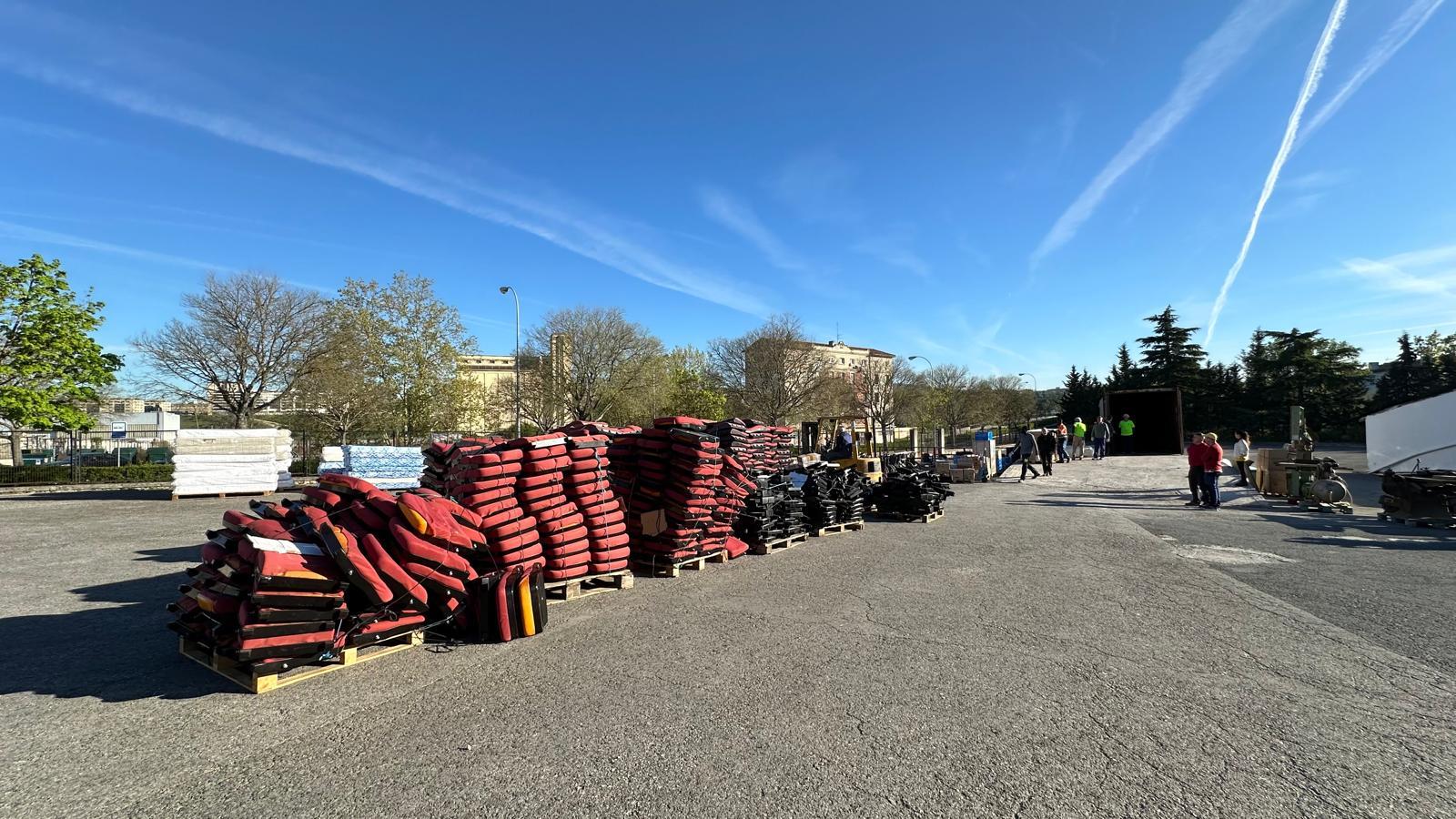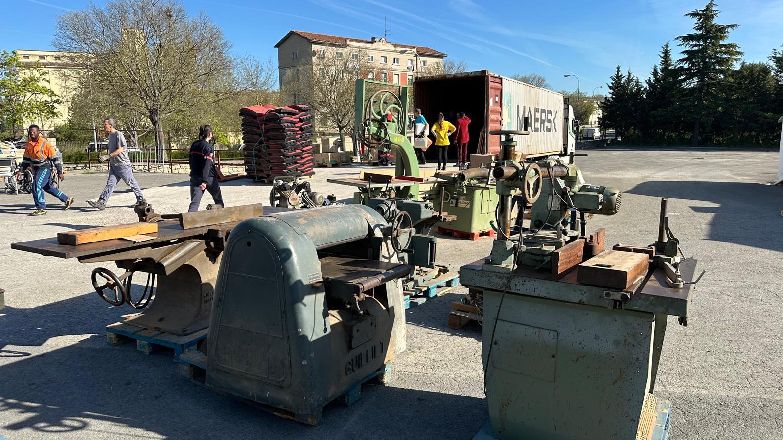 En presencia de su presidenta, Clementine  Baza Bola, hemos cargado diferentes materiales. Se han cargado ordenadores, herramientas, colchones, una carpintería completa y un montón de materiales más hospitalarios.