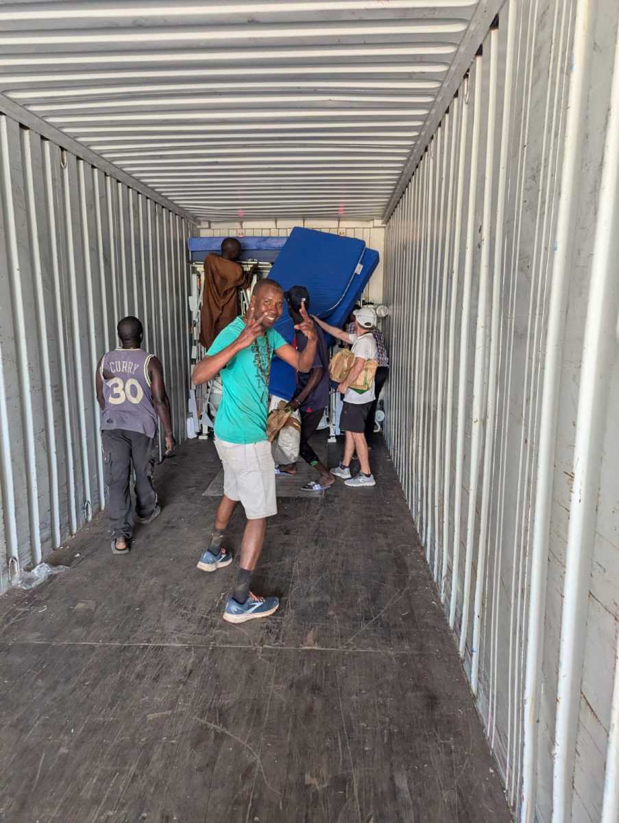 Esta ONG Dimbale gestionará el reparto de los materiales donados : 50 cajas de material hospitalario y 55 camas completas con sus colchones ( recogidas esta semana en el Hospital de San Sebastián ). También se han cargado sábanas, sillas de ruedas, materiales de higiene y de limpieza.