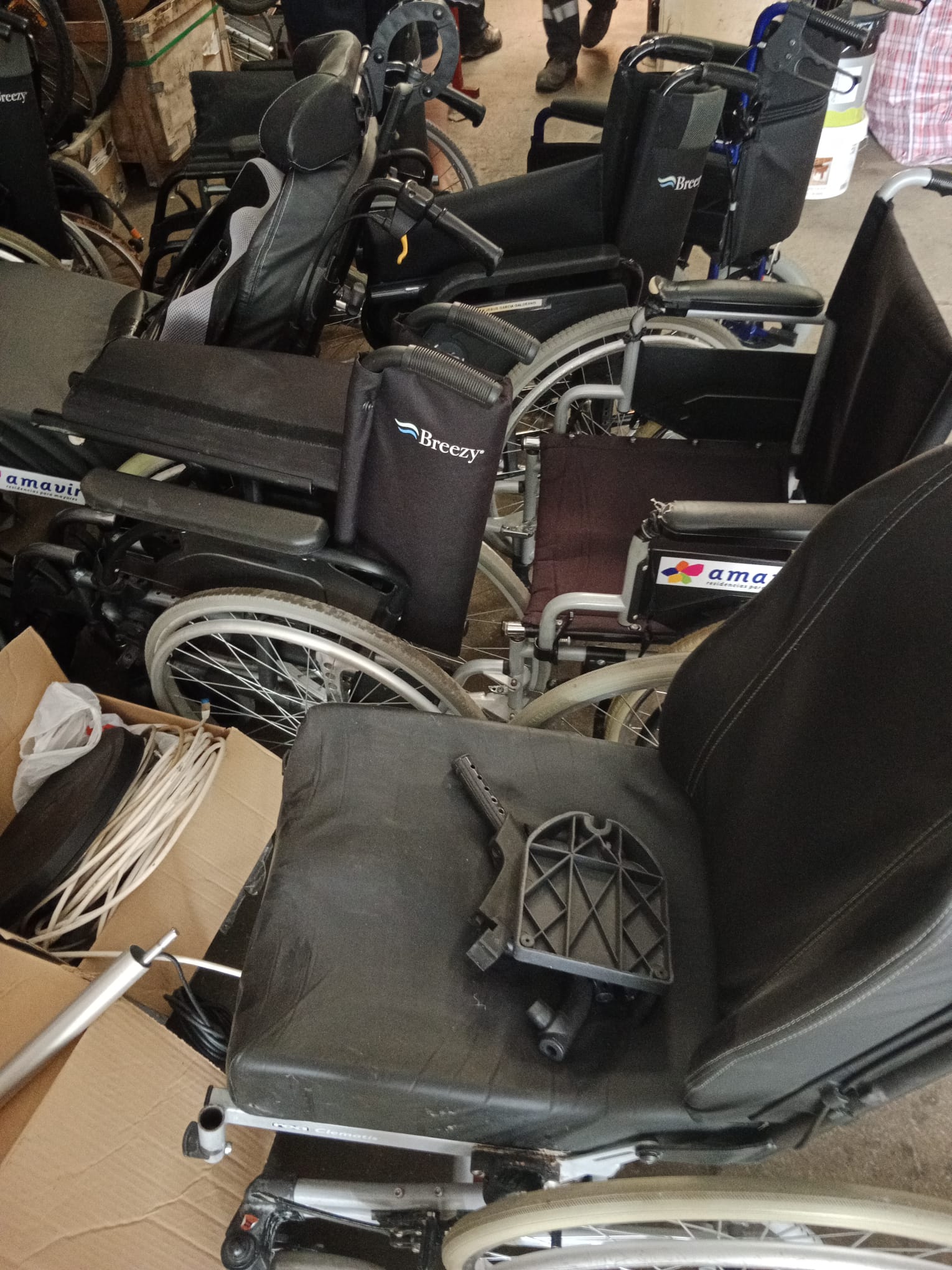El día junio de mayo de 2025 hemos recibido en nuestras instalaciones la donación de 8 sillas de ruedas que nos ha traído Julio Zubiría de Amavir Argaray.