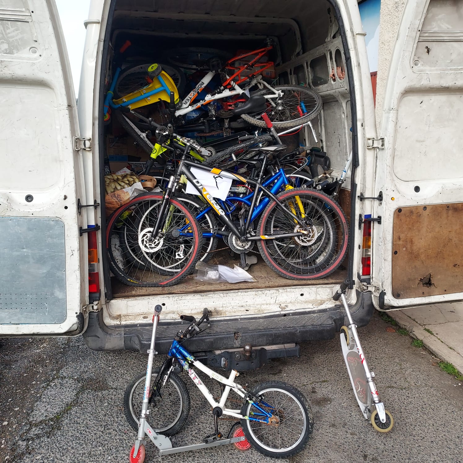 Los días 27 y 28 de febrero de 2025 nos hemos desplazado hasta Andoain para recoger una donación de 41 bicicletas, un patinete y un balón, el primer día y en la segunda jornada, 24 bicis, un cuadro y 9 patinetes. Materiales donados por el Ayuntamiento de Andoain.