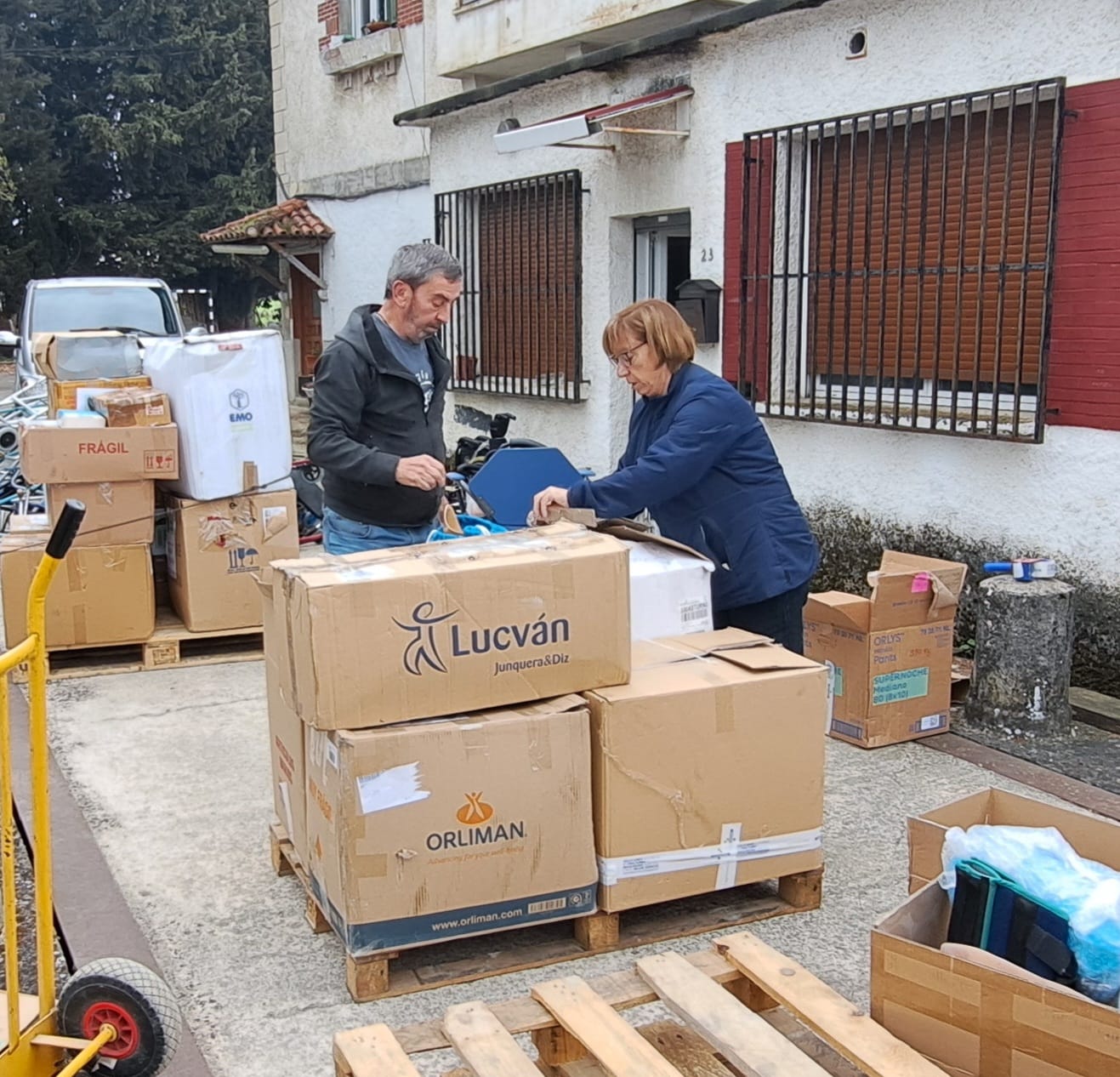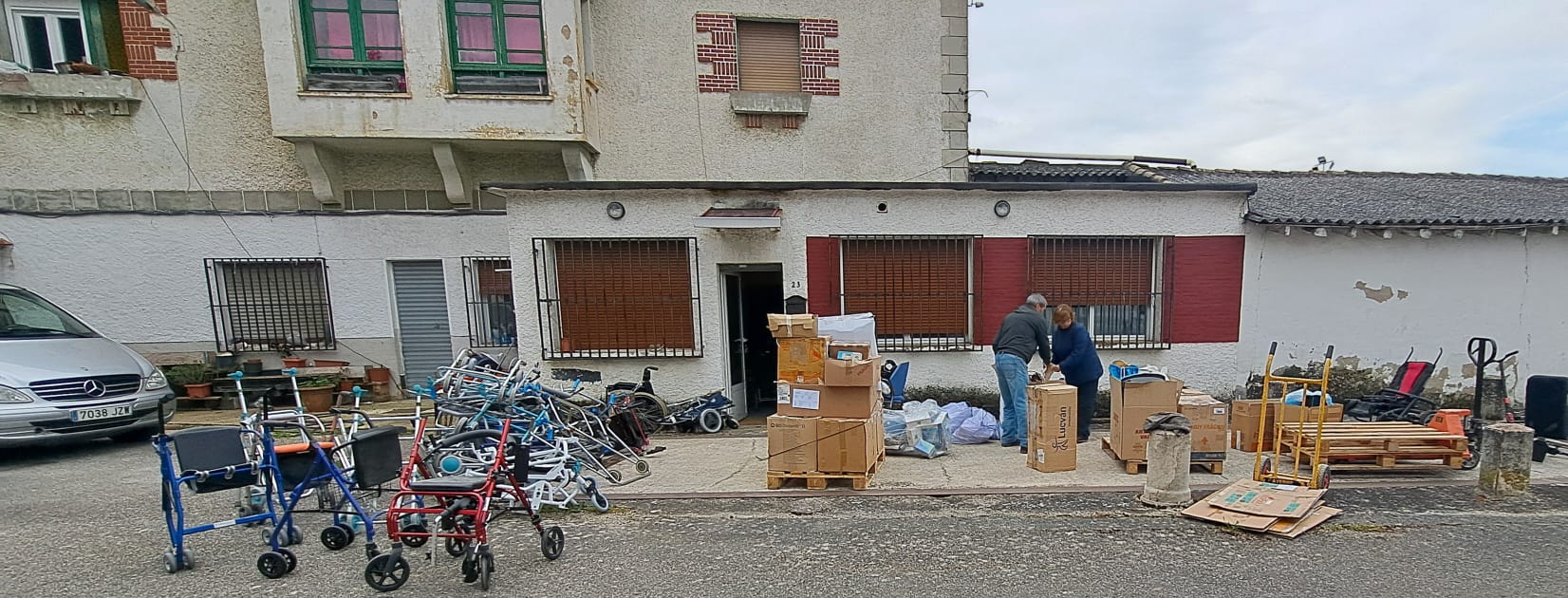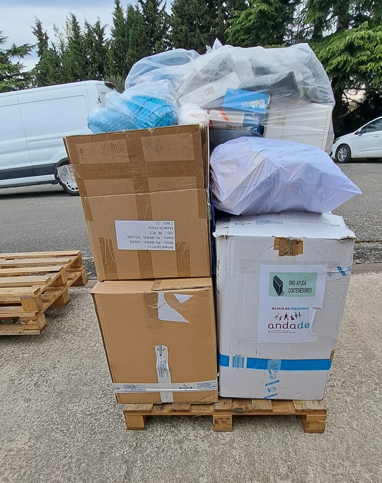 Son dos palés de material protésico de Andade Valladolid  y también 10 andadores, 3 sillas de ruedas especiales y muletas.