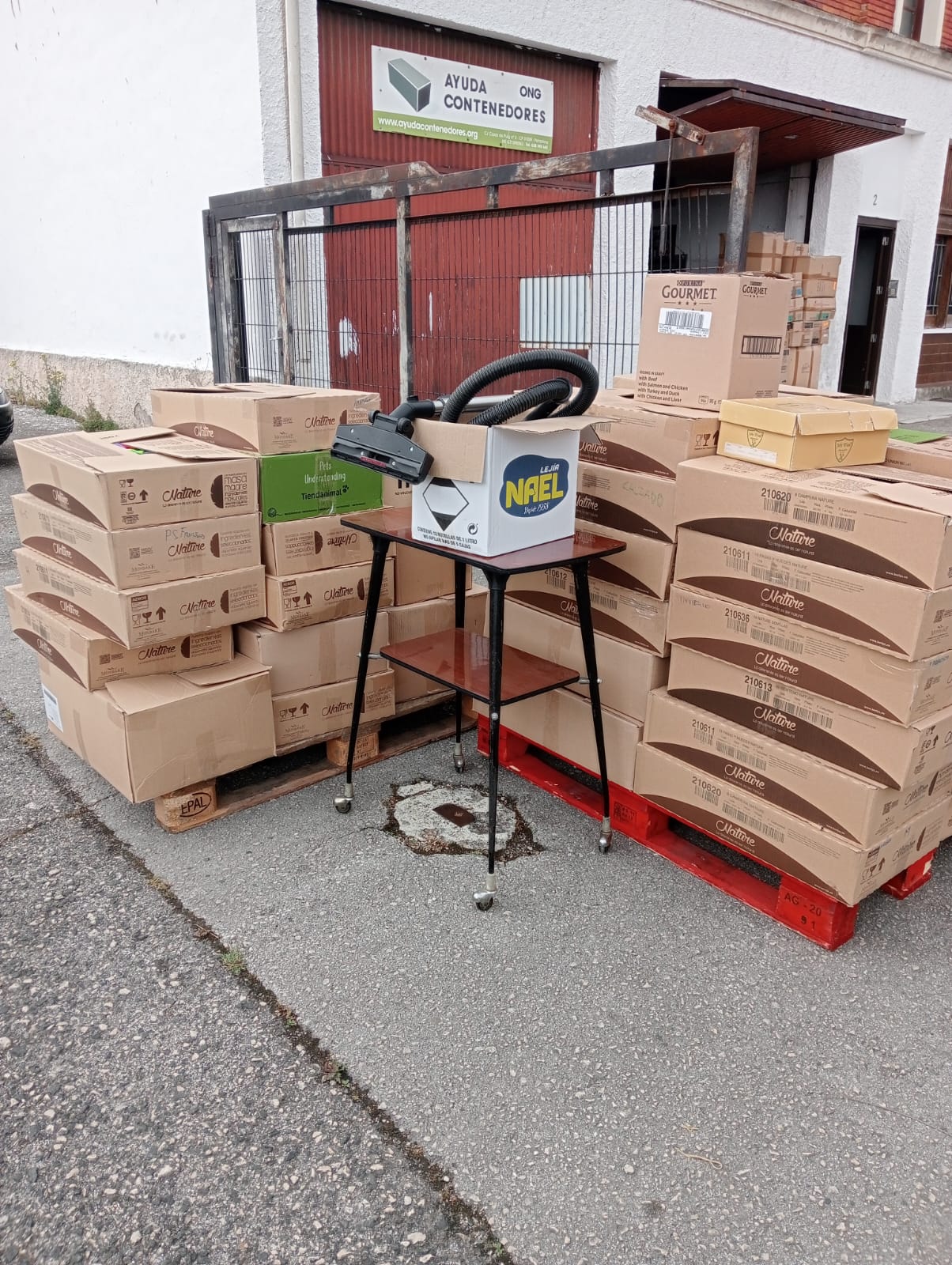 El día 2 de julio de 2024 hemos recogido la donación de 40 cajas de ropa, una aspiradora y una mesita. Unos materiales entregados en la Calle Mayor de Pamplona, procedentes de la ciudadana Anizcun.