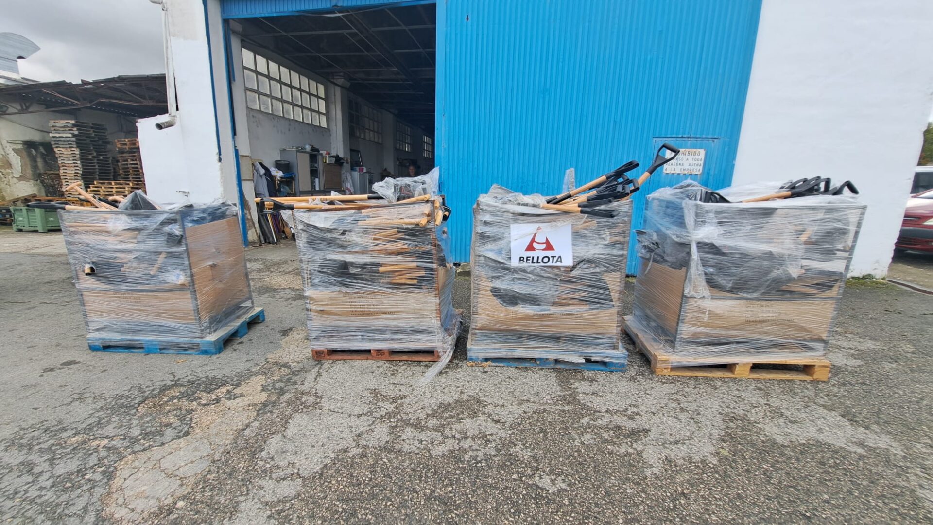 El día 9 de octubre de 2024 hemos recibido en nuestras instalaciones de Echavacoiz una nueva donación de la empresa Bellota Herramientas S.A. de Legazpi con el contenido de 4 palés con palas.