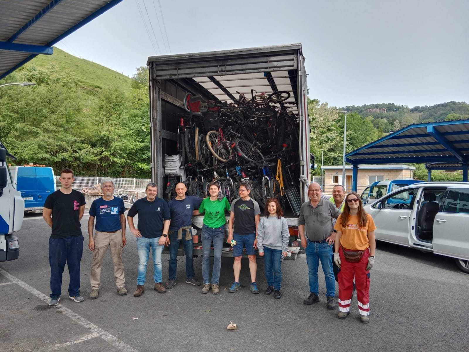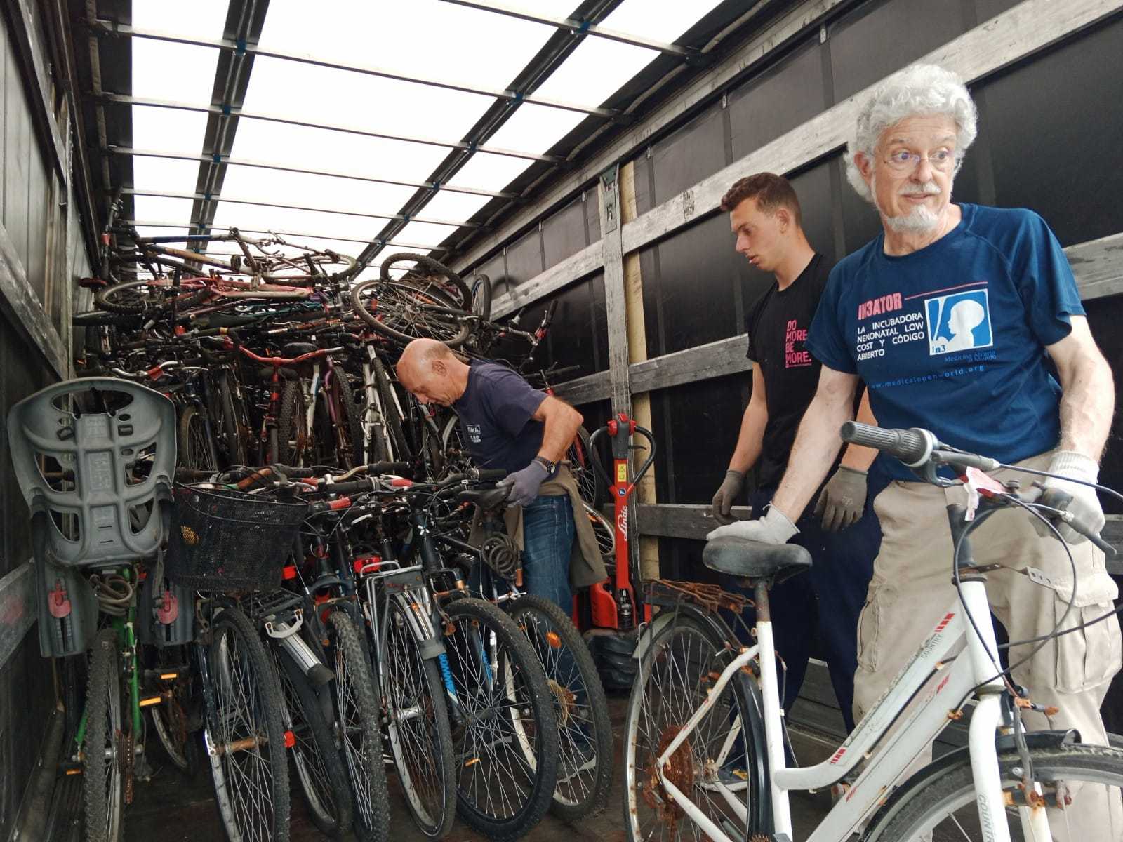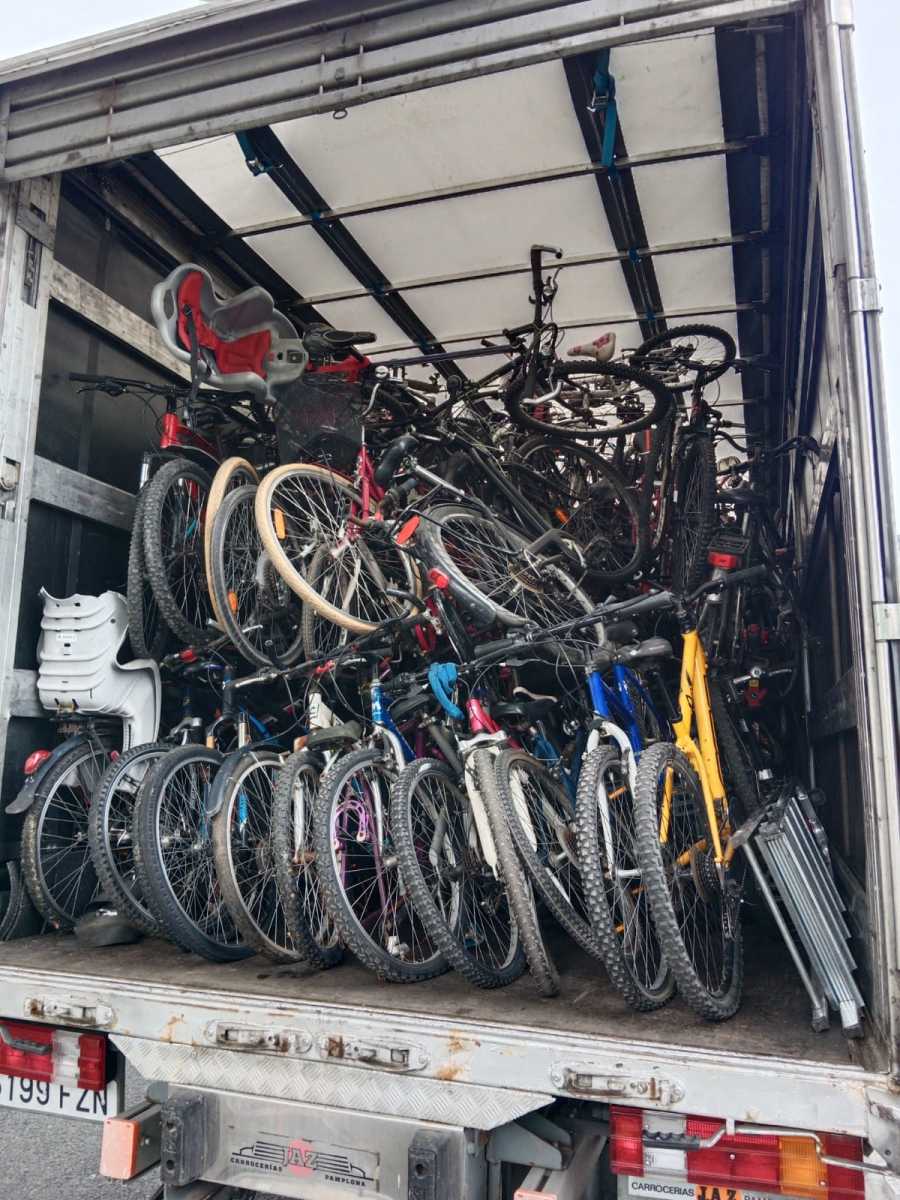El lunes 8 de Mayo de 2023, un grupo de voluntarios/as se han desplazado hasta San Sebastián para recoger una donación de 300 bicicletas, que una vez cargadas y tras el viaje de vuelta  se han almacenado en nuestras instalaciones para ser revisadas, puestas a punto y posteriormente ser enviadas a distintos destinos.