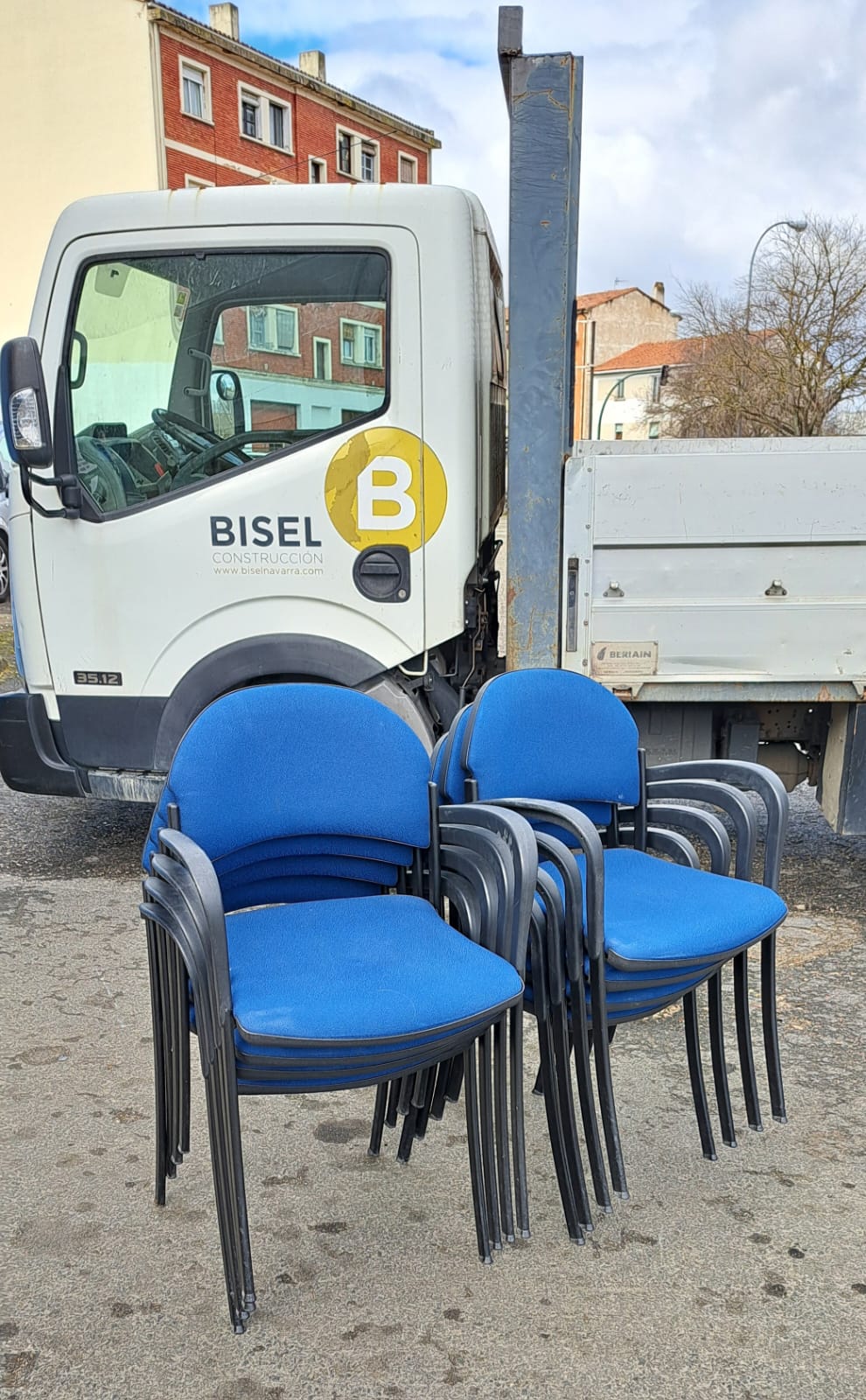 El día 23 de febrero de 2024, hemos recogido en nuestras instalaciones la donación de 8 sillas de la empresa de construcciones Bisel Navarra.