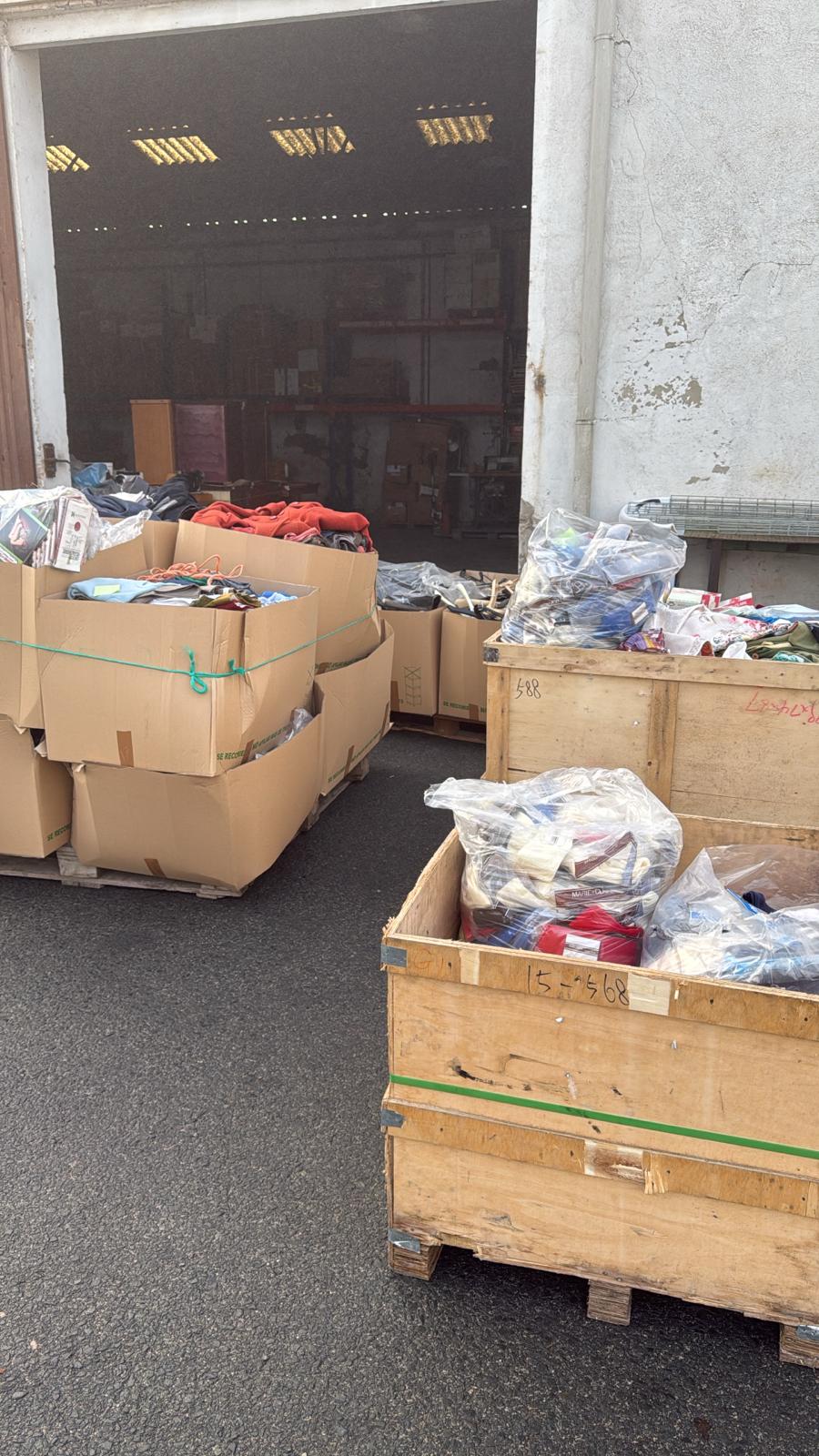 El día 10 de enero de 2025 hemos recogido varios palés con cajas de ropa procedentes de la tienda de ropa en Pamplona, Confecciones Vitori.