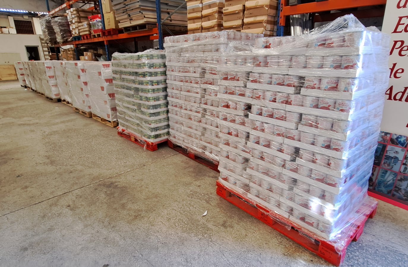 El día 8 de mayo de 2024 hemos recibido en nuestras instalaciones otra donación de 11 palés de latas de tomate procedentes del GRUPO IAN  La Carretilla