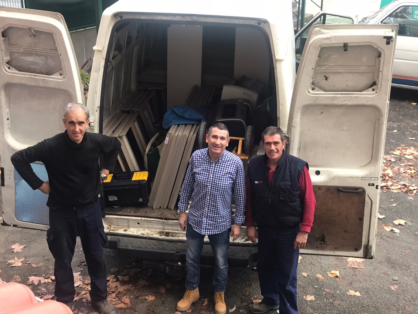 El 30 de diciembre de 2022 hemos recogido del Easo Politeknikoa de Donostia-San Sebastián la donación de: 30 mesas, 4 pizarras, 30 sillas y 2 impresoras.