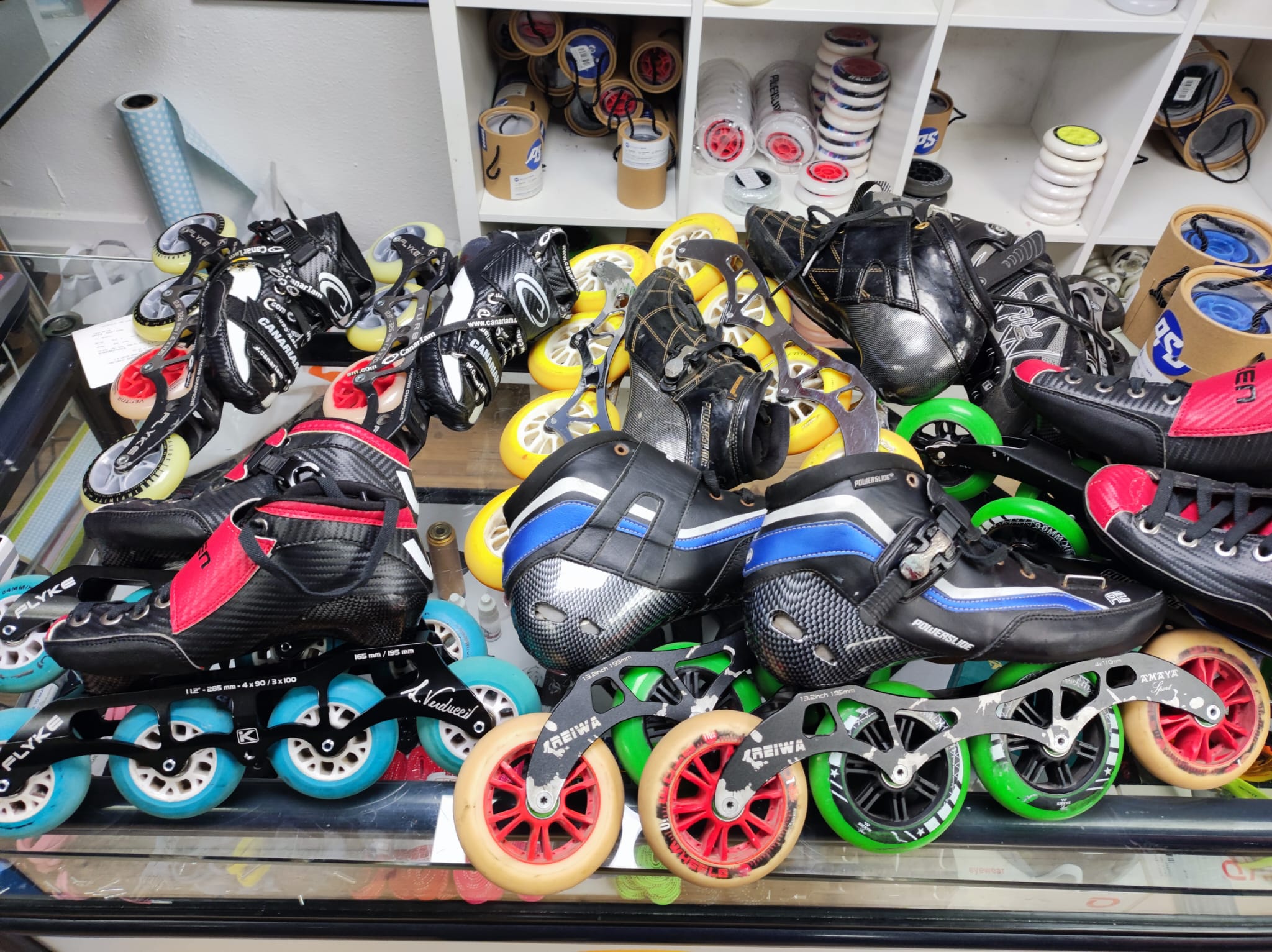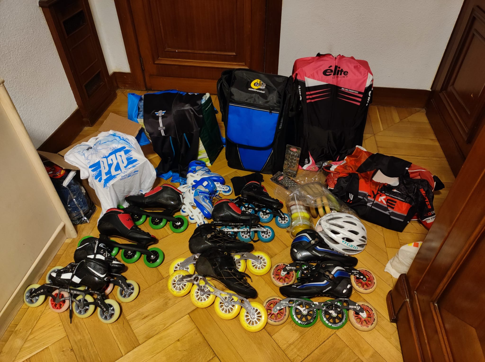 La donación consiste en 6 pares de patines, material de repuesto, ruedas, bodys, maletas-mochila, camisetas de la P2P.