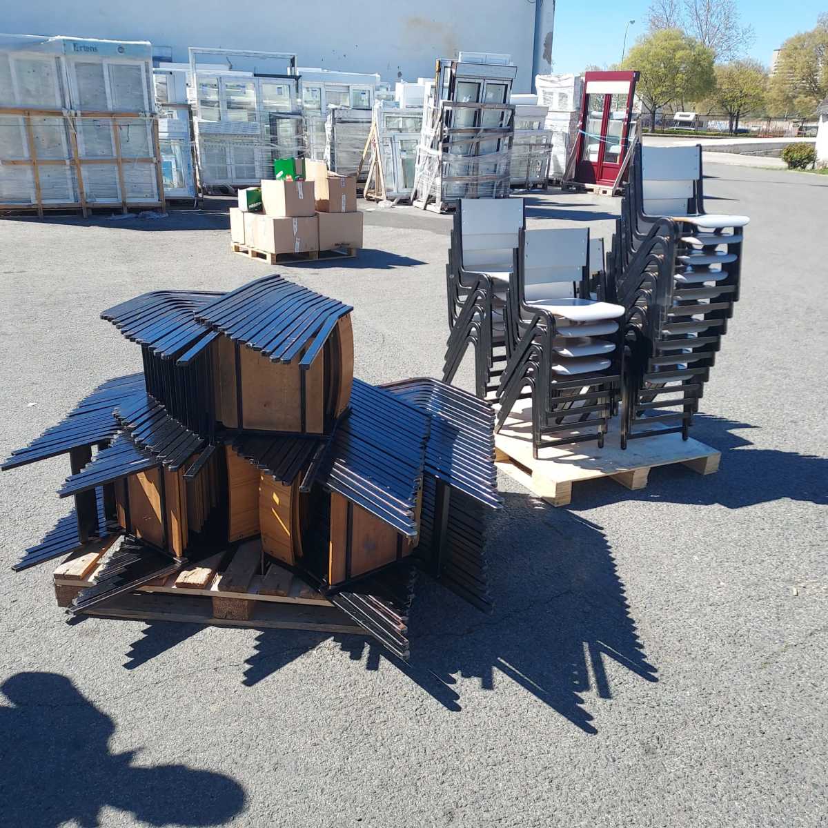 67 sillas, 73 pupitres, 3 pizarras y 10 cajas de imagineria,