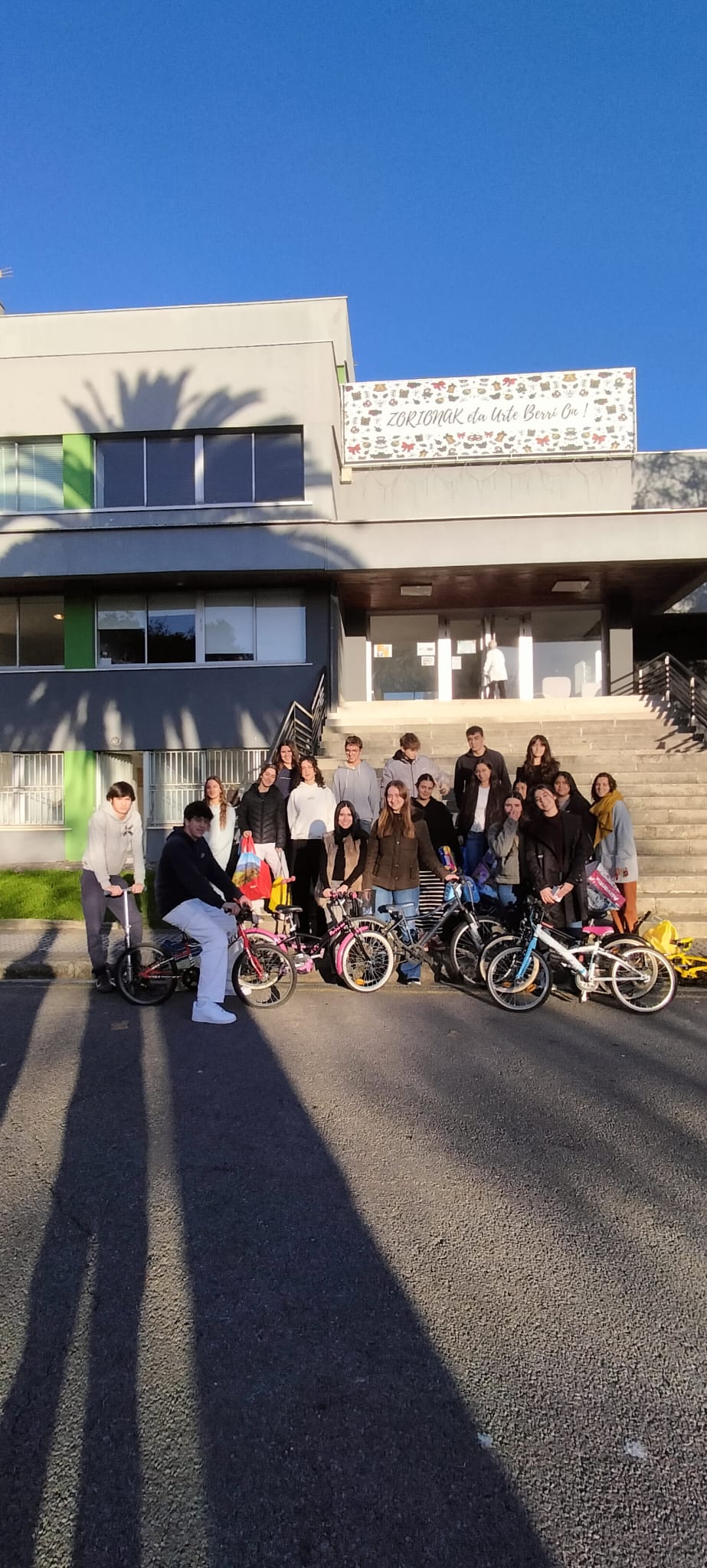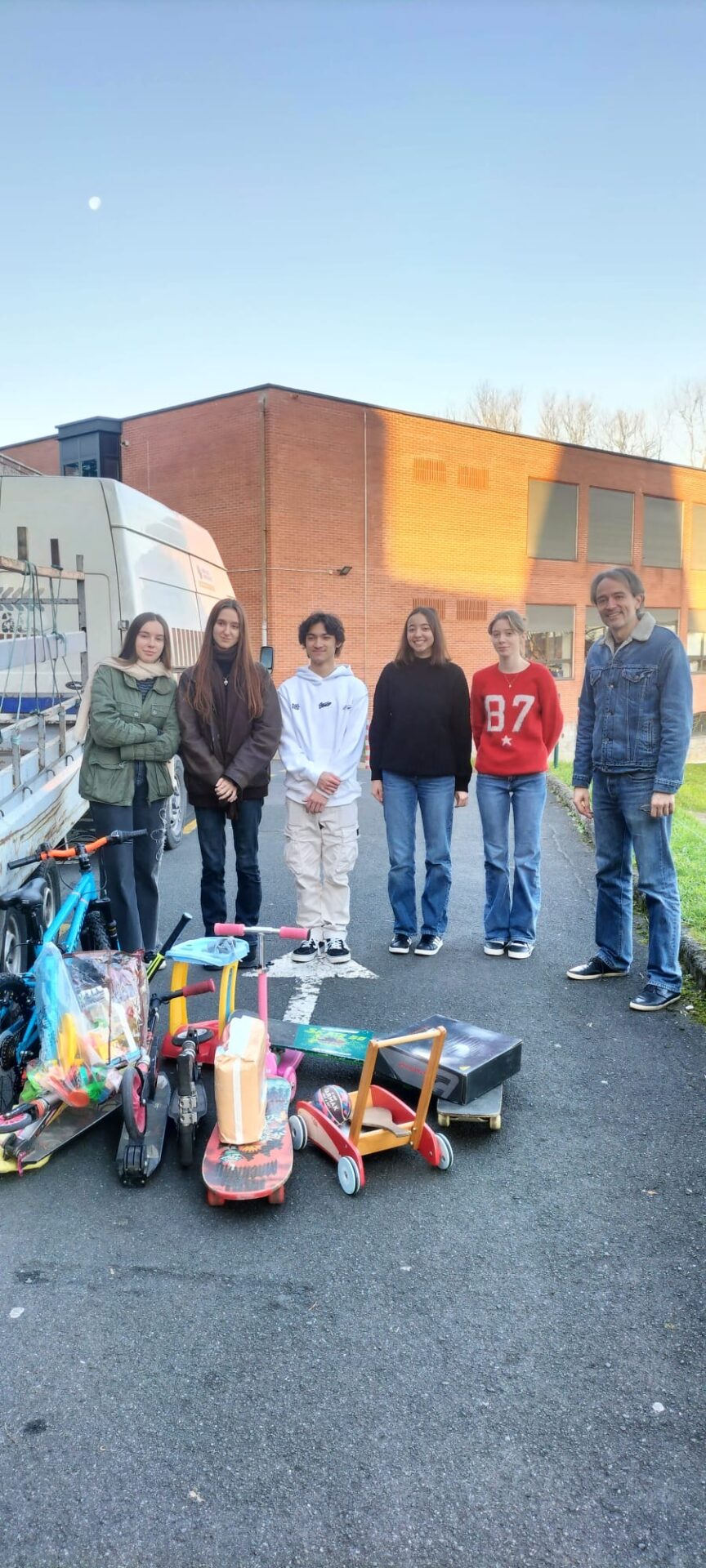 El día 18 de diciembre de 2024 nos desplazamos hasta Donosti para recoger una donación de juguetes y bicicletas que recolectó para Ayuda Contenedores el alumnado de los centros Santa Teresa Ikastetxea, Larramendi Ikastetxea y Jesuitinas Donostia, reunidos en un proyecto educativo conjunto. Gracias de todo corazón por su esfuerzo a ElaiEnea Ikastetxea