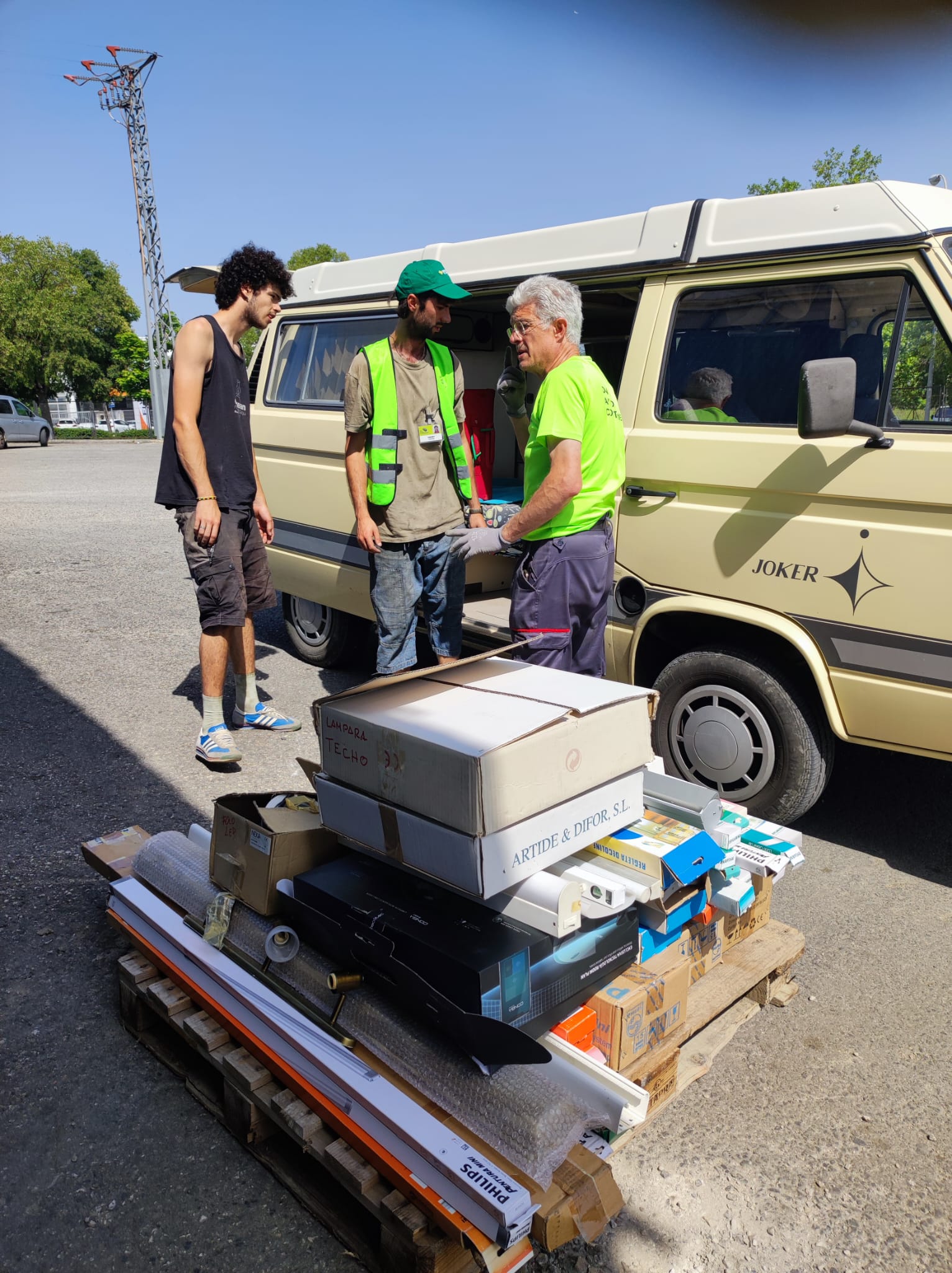 El día 24 de junio de 2024 recogimos una donación procedente de la Asociación Voluntariado El taller, de Pamplona, con los siguientes materiales de electricidad: