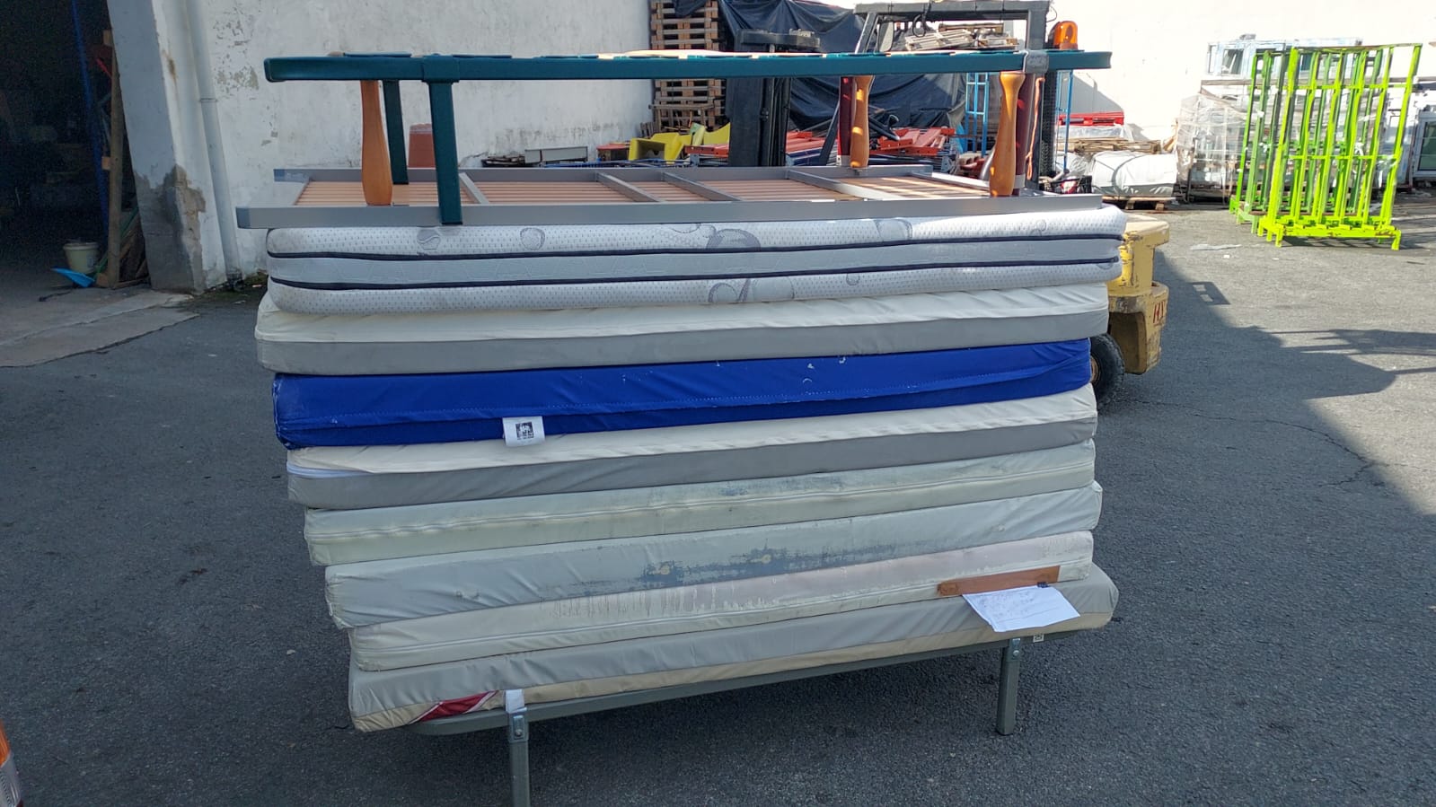 El día 18 de febrero de 2026, hemos recogido una donación de 3 somieres y 13 colchones, procedentes de la Casa de Misericordia de Pamplona: