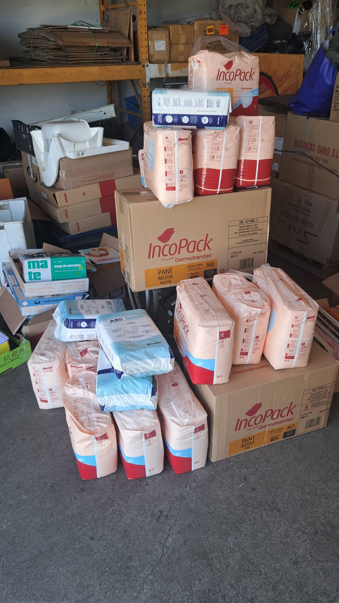 El día 27 de junio de 2025 hemos recogido de la Farmacia Heras de Pamplona, la donación de una silla de ruedas y varias cajas de pañales.