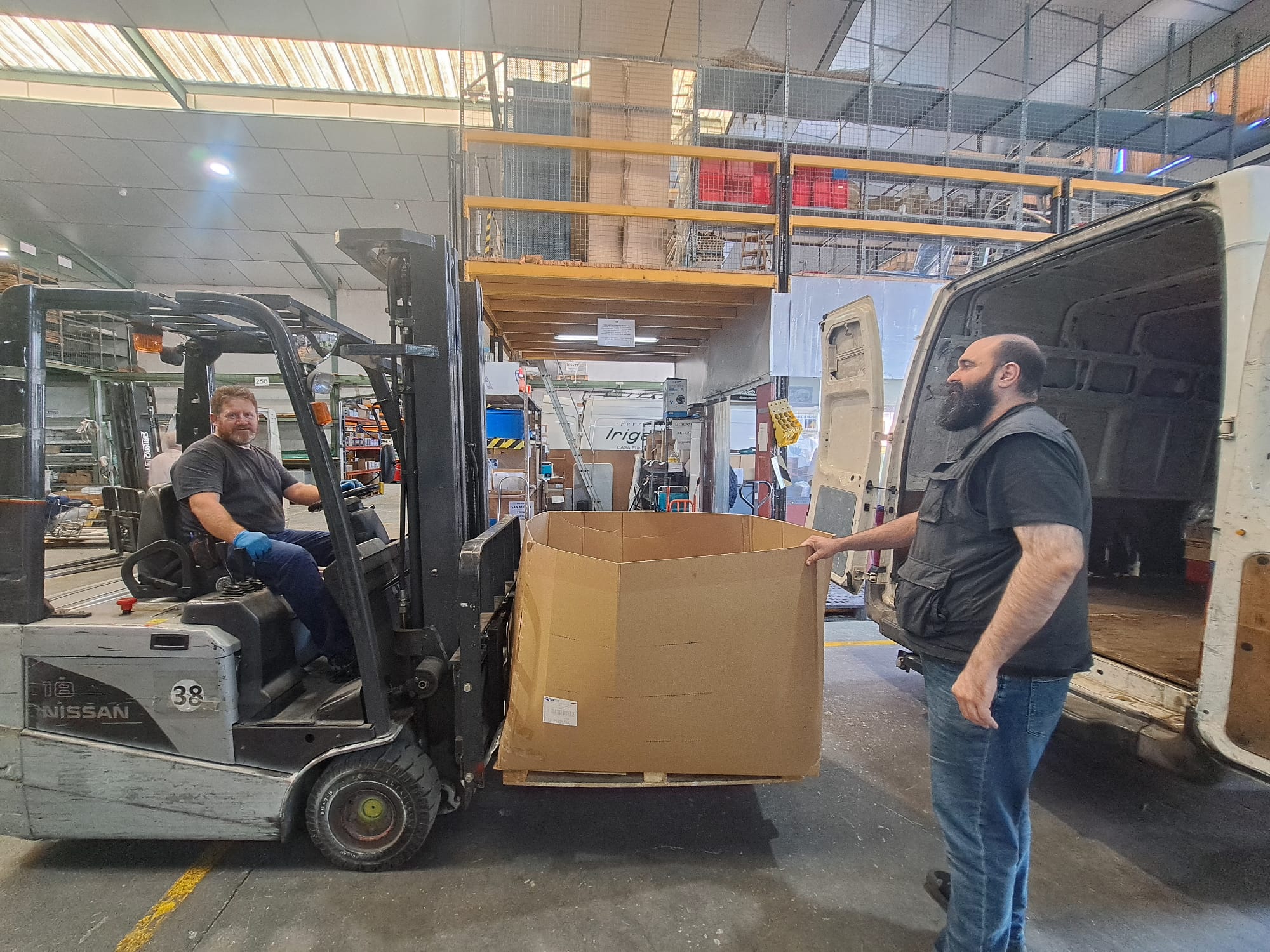 El día 3 de septiembre de 2025 hemos recibido en nuestras instalaciones una donación de la Ferretería Irigaray de Pamplona consistente en un cajón con material diverso.