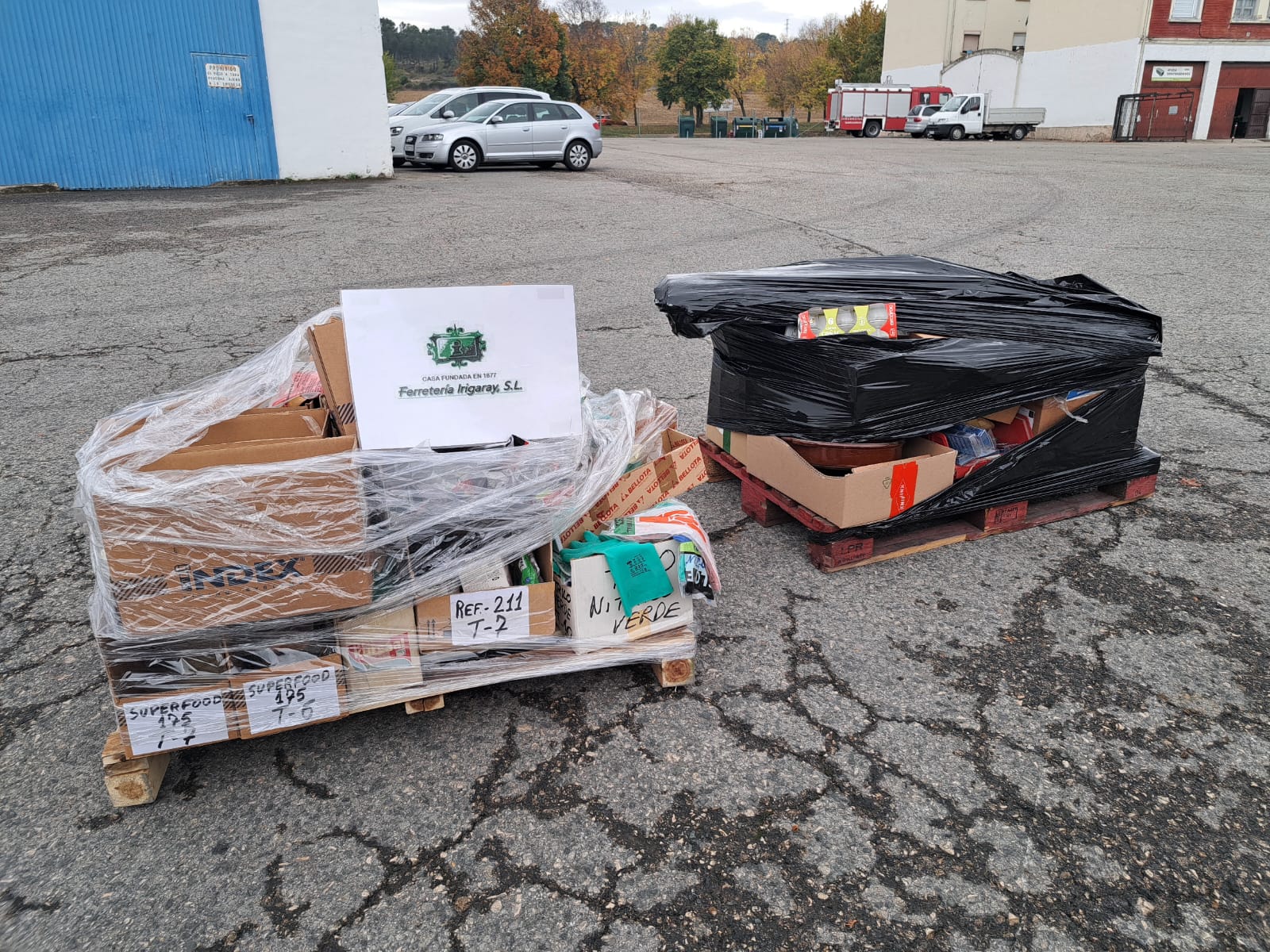 El día 31 de octubre de 2025 hemos recogido una donación de la Ferretería Irigaray de Pamplona consistente en 2 palés de material diverso.