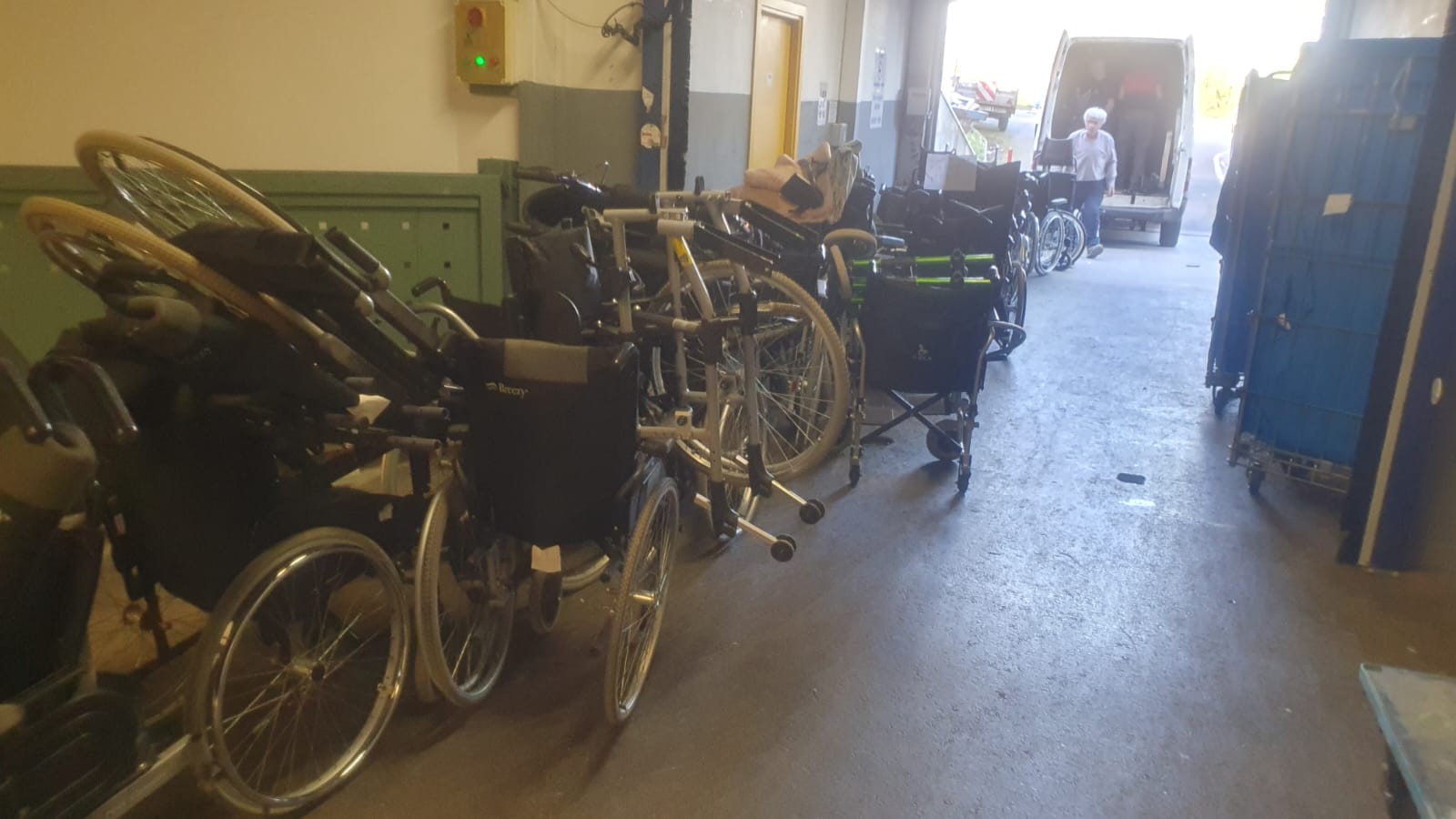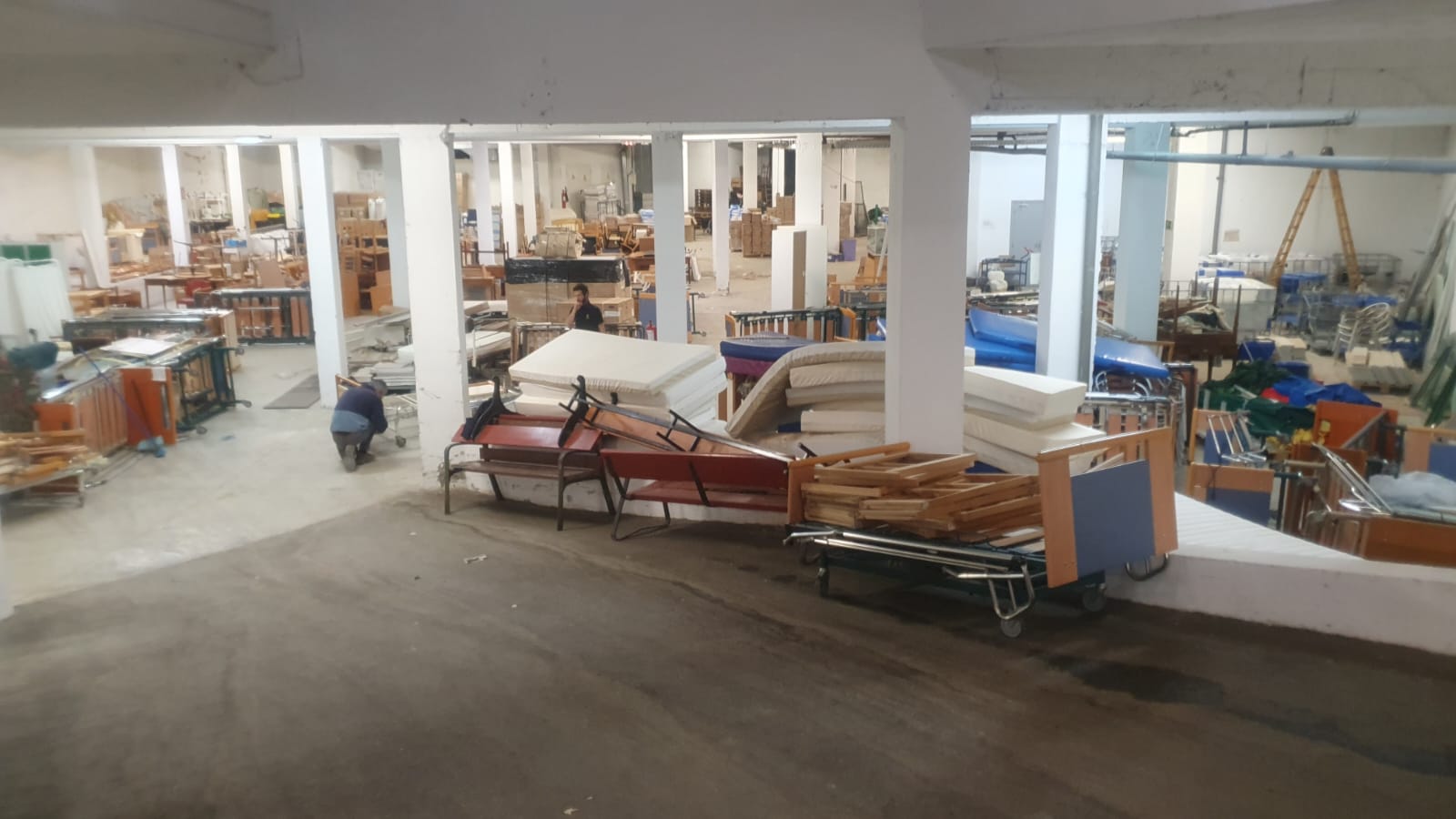 23 camas hospital manuales, 3 somieres, 10 andadores, 10 sillas baño, 2 mesillas, 47 sillas ruedas,30 bastones y 2 muletas.