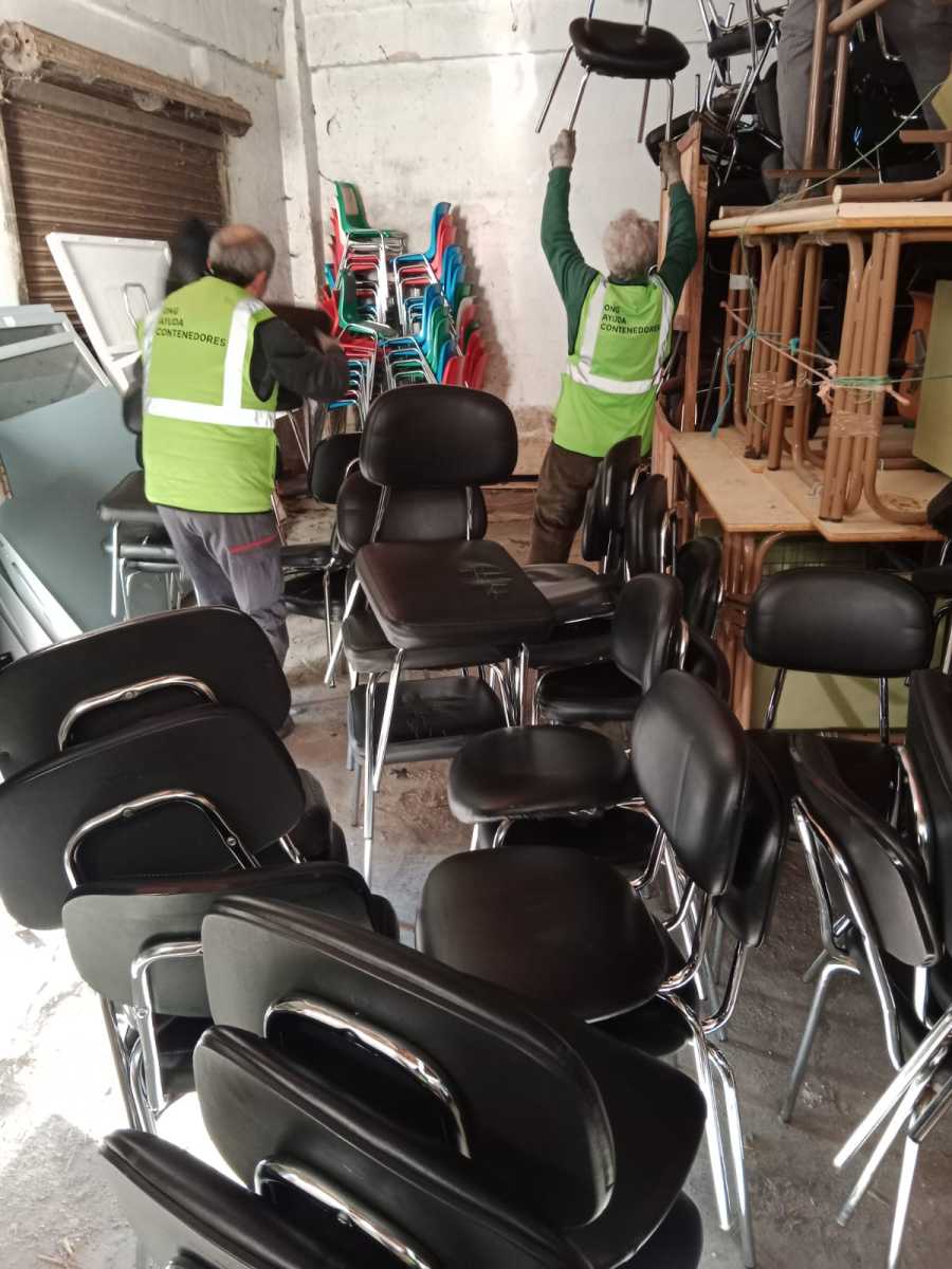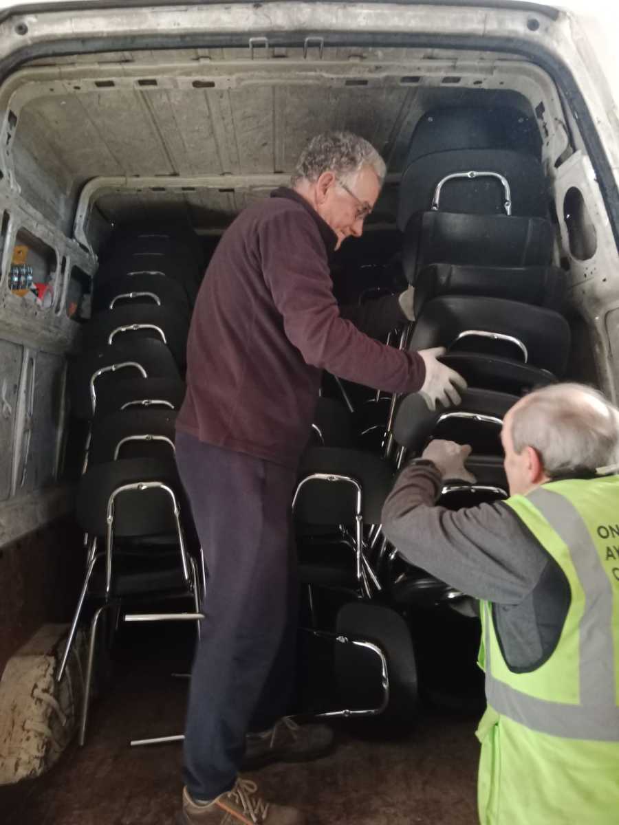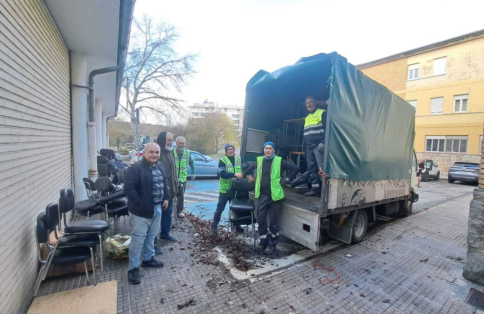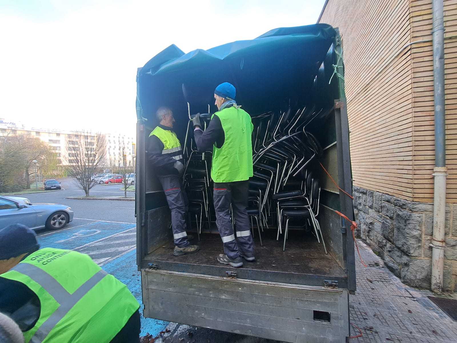 En la mañana del día 22 de diciembre de 2025, un grupo de voluntarios/as nos desplazamos hasta el aulario de la UPNA en el edificio de El Sario, de la  Universidad Pública de Navarra,  para hacernos cargo de una donación de 167 sillas y 95 pupitres procedentes de la Escuela de Idiomas.