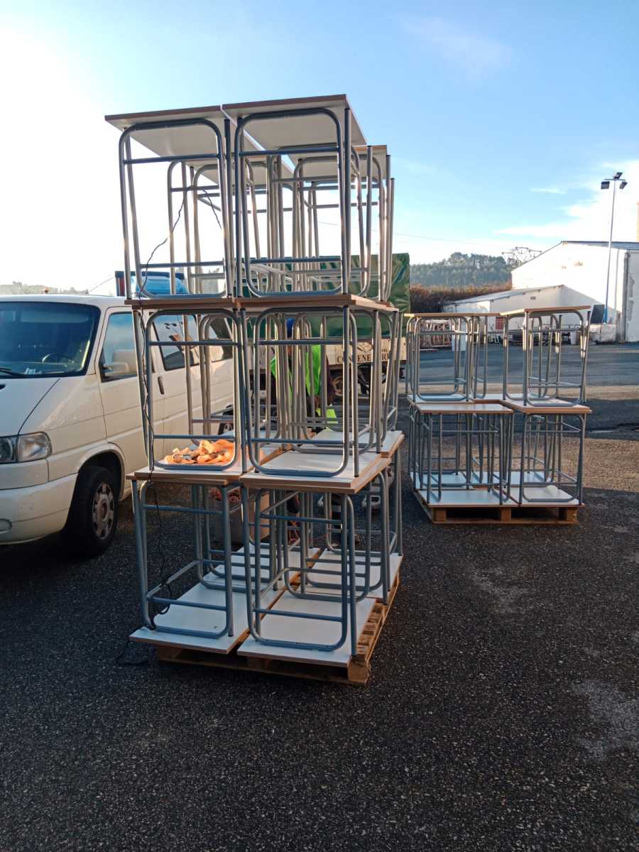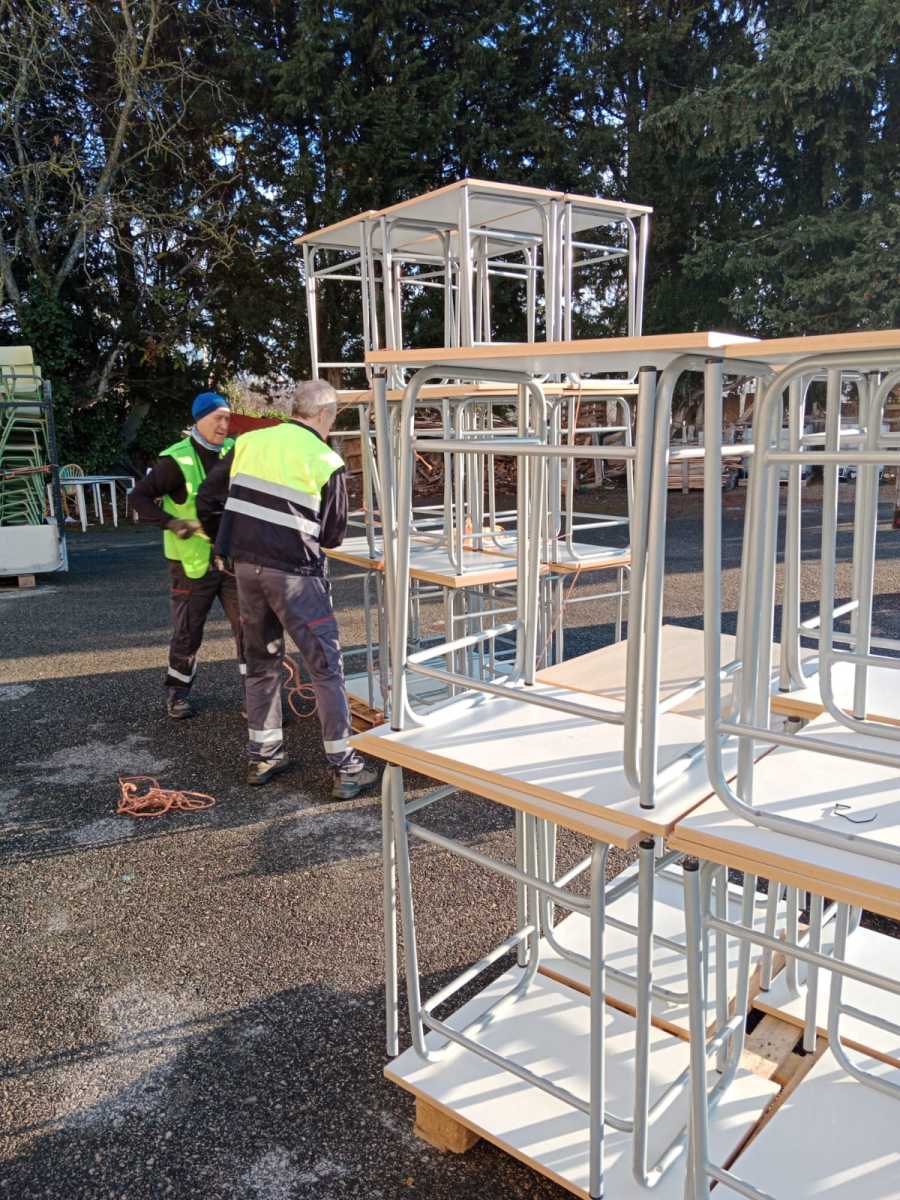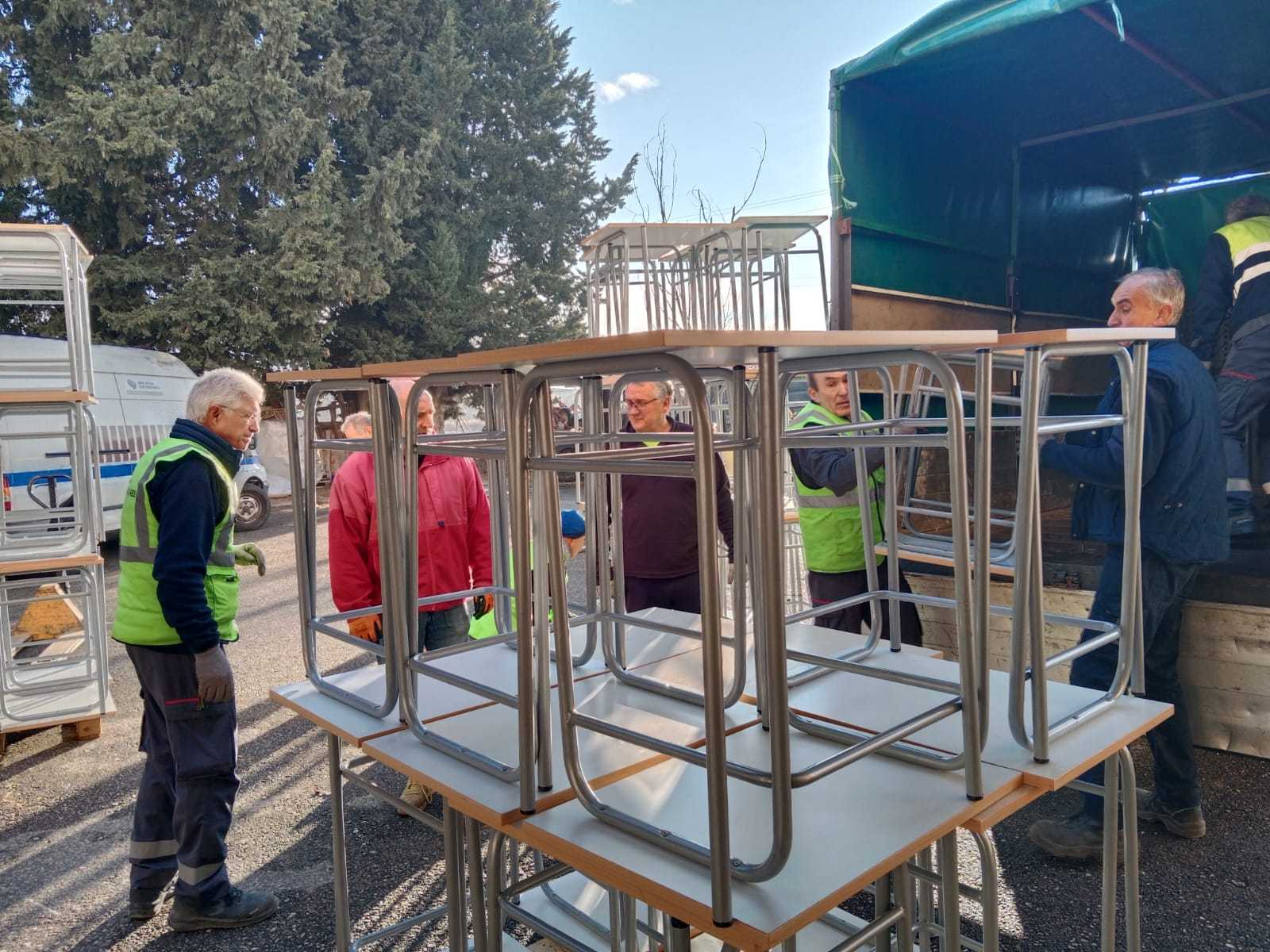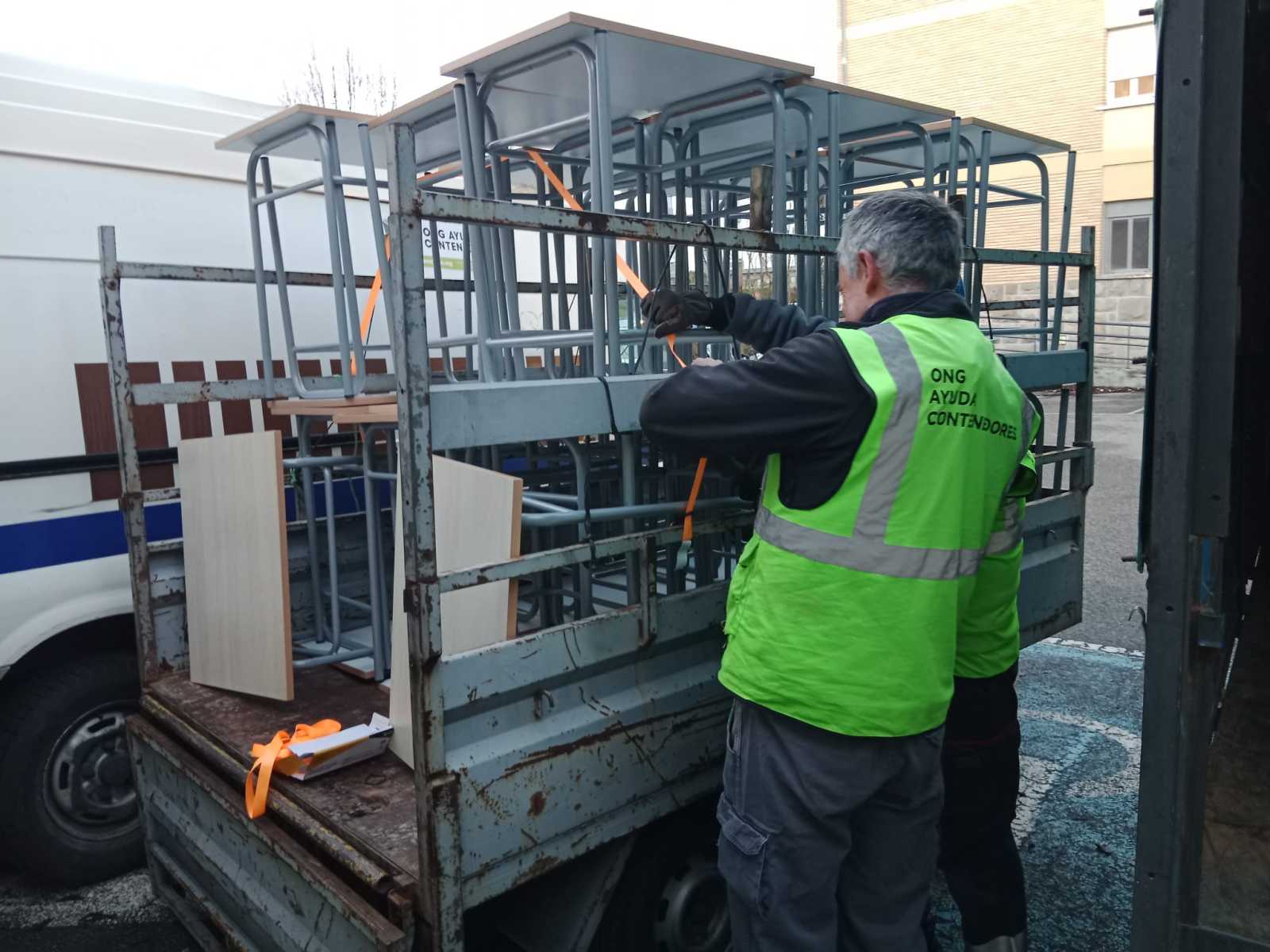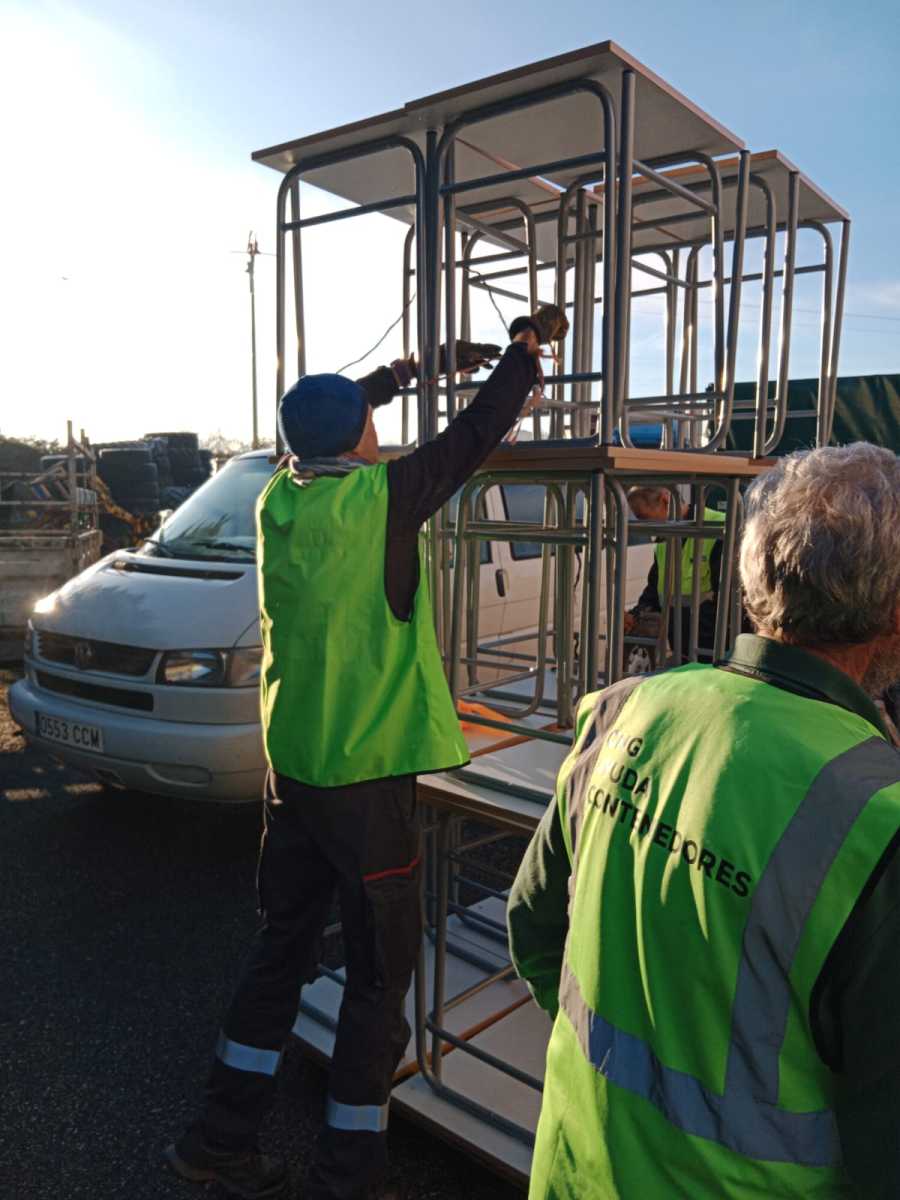 En la mañana del día 22 de diciembre de 2025, un grupo de voluntarios/as nos desplazamos hasta el aulario de la UPNA en el edificio de El Sario, de la  Universidad Pública de Navarra,  para hacernos cargo de una donación de 167 sillas y 95 pupitres procedentes de la Escuela de Idiomas.