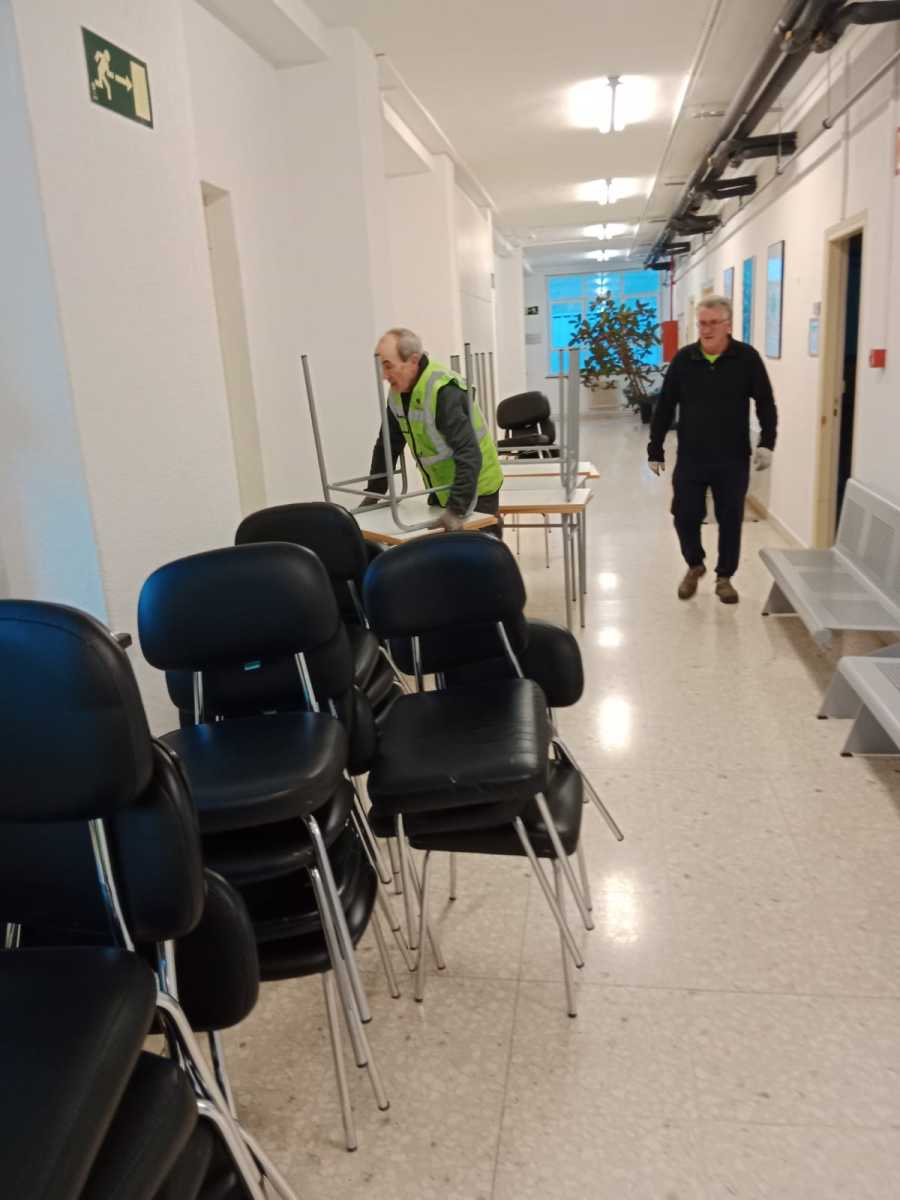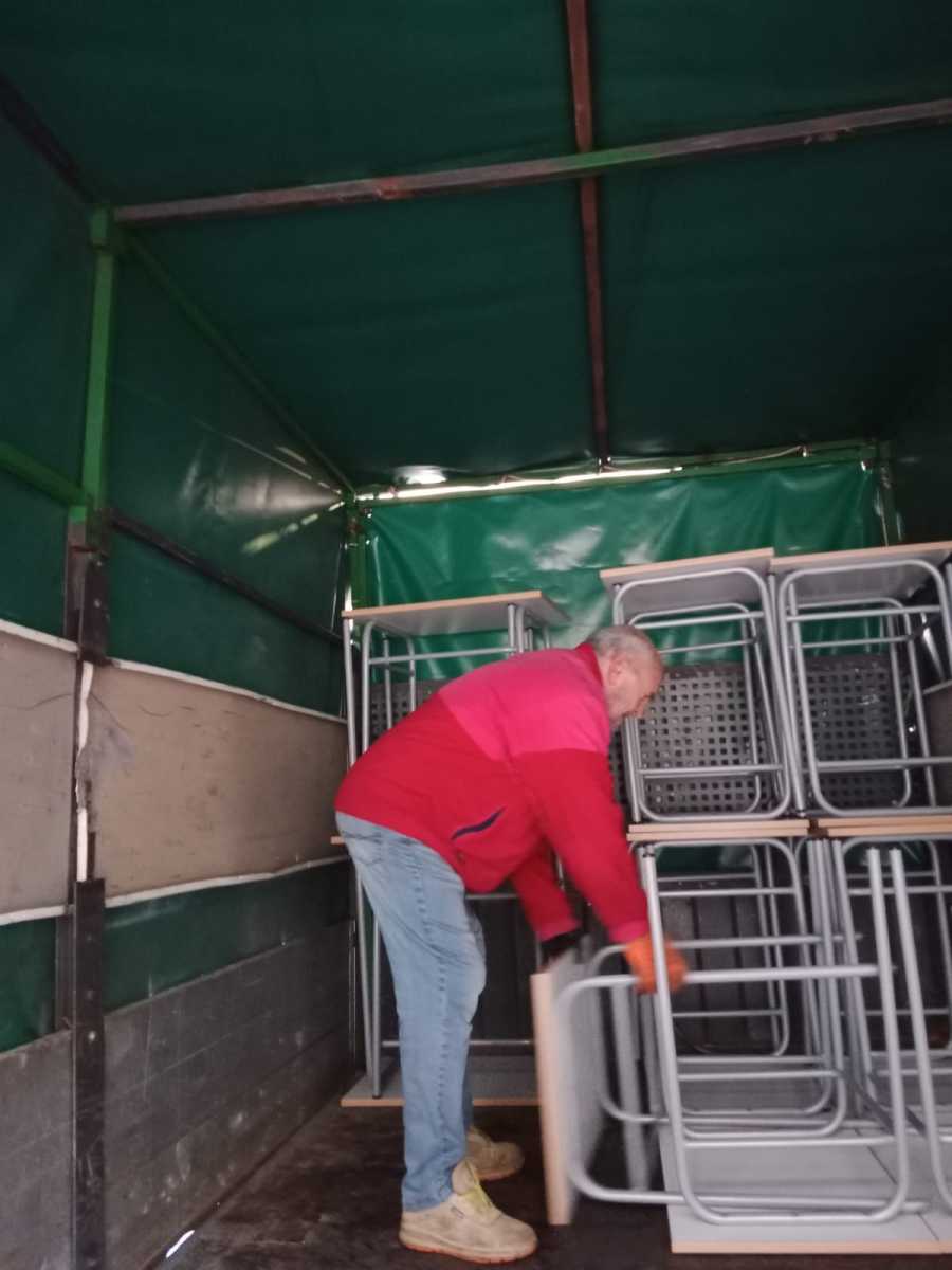 En la mañana del día 22 de diciembre de 2025, un grupo de voluntarios/as nos desplazamos hasta el aulario de la UPNA en el edificio de El Sario, de la Universidad Pública de Navarra, para hacernos cargo de una donación de 167 sillas y 95 pupitres procedentes de la Escuela de Idiomas.