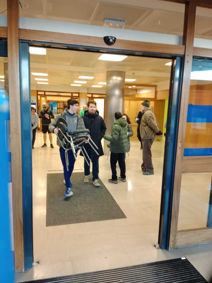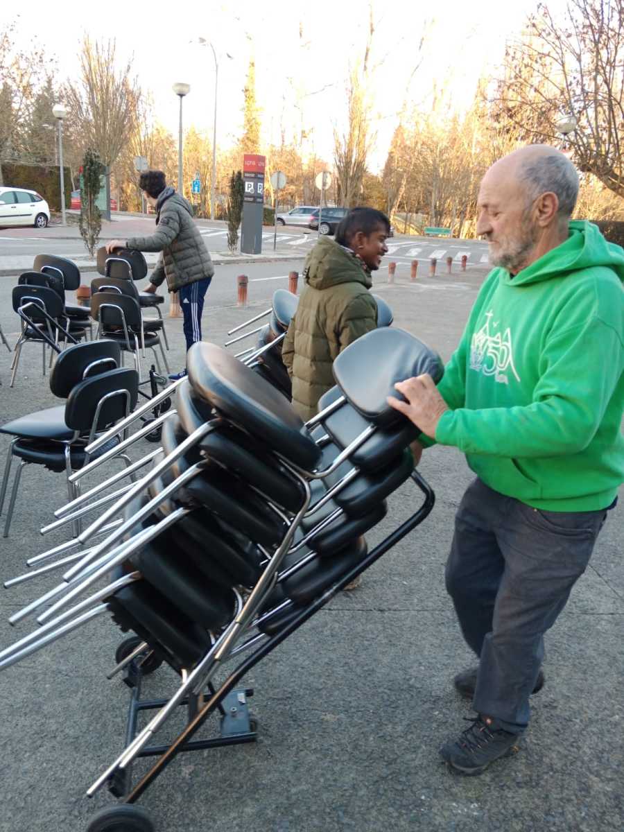 En la mañana del día 27 de diciembre de 2023, un grupo de voluntarios/as nos desplazamos hasta el aulario de la UPNA y Edificio de El Sario, y otro grupo hasta la Escuela de Enfermería de la   Universidad Pública de Navarra para hacernos cargo de una donación de sillas de aula. Después de recoger la donación de las 685, las  trasladamos hasta nuestras instalaciones en Echavacoiz.