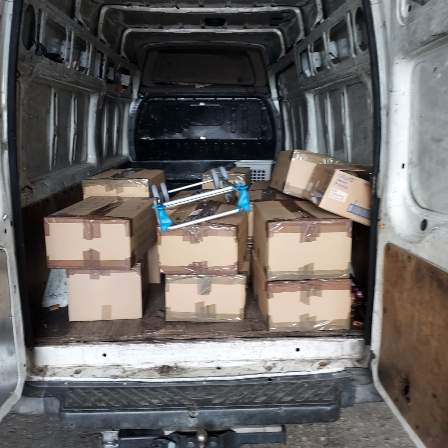 El día 22 de febrero de 2024 hemos recogido en las Monjas Blancas del Soto de Lezkairu una nueva donación de 20 cajas de ropa, calzado, un andador y varios bastones.
