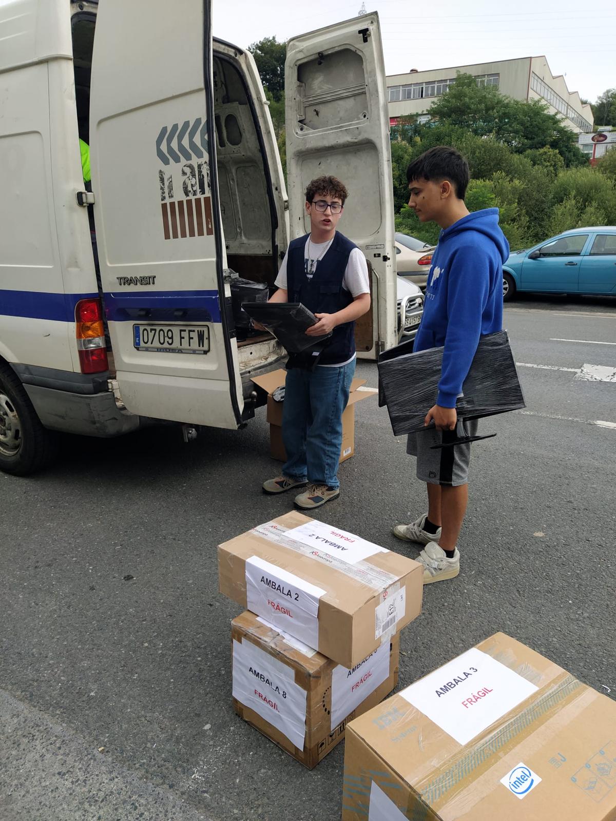 En la mañana del día 10 de septiembre de 2025 nos hemos desplazado hasta Martutene (Gipuzkoa) para recoger una donación del Martutene Lanbide Eskola consistente en varias cajas de ordenadores para que tienen como destino el próximo envío de Ambala al Camerún y también 25 pantallas de ordenador. Son materiales preparados por el propio alumnado.