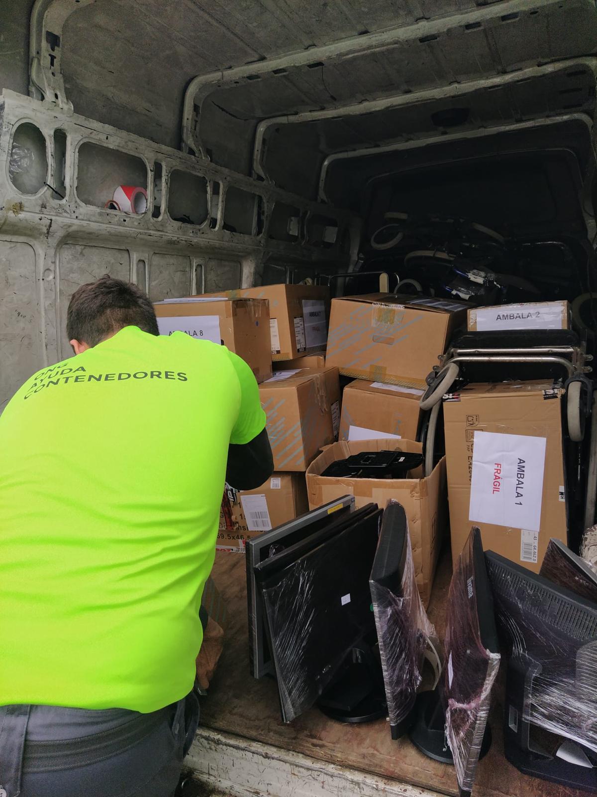 En la mañana del día 10 de septiembre de 2025 nos hemos desplazado hasta Martutene (Gipuzkoa) para recoger una donación del Martutene Lanbide Eskola consistente en varias cajas de ordenadores para que tienen como destino el próximo envío de Ambala al Camerún y también 25 pantallas de ordenador. Son materiales preparados por el propio alumnado.