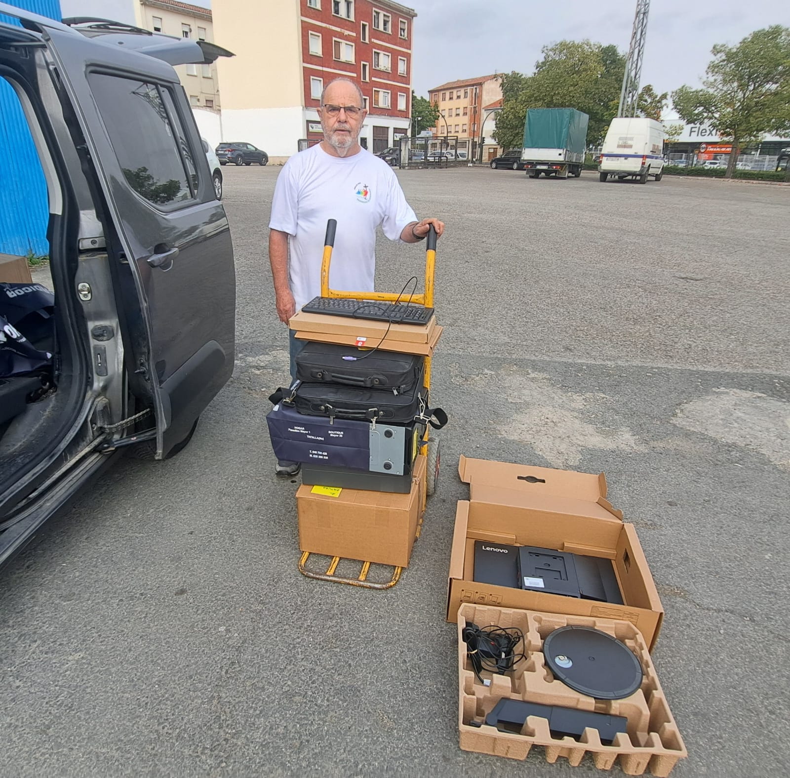 El día 18 de agosto de 2025, a través de Arturo Ros -P. Escolapio ahora en Tafalla- hemos recibido la donación de un conjunto de material informático con destino a sus compañeros escolapios en Valencia (Venezuela) consistente en: