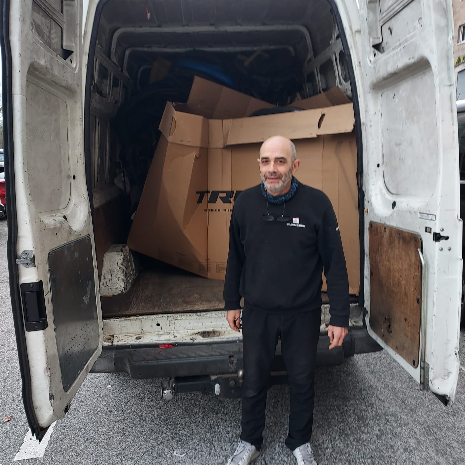 El día 28 de febrero de 2024 hemos recogido una donación de Iruña Bikes de Pamplona consistente en un lote de cubiertas, cámaras y dos cajas con repuestos.