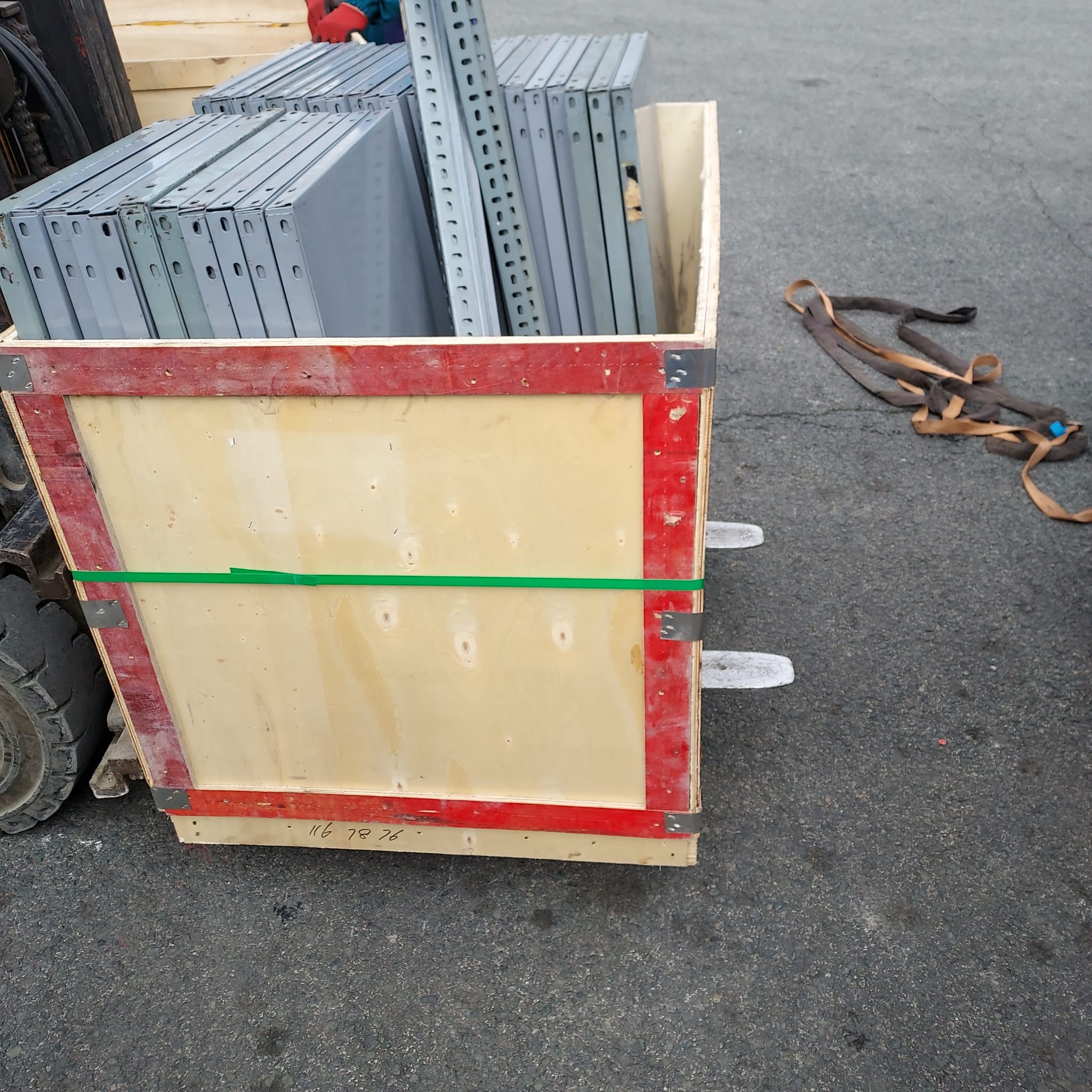 El día 12 de marzo de 2024 hemos recogido en Pamplona, una donación de 4 cajones de baldas y barras de estantería, de parte de Papelería Técnica Rubio