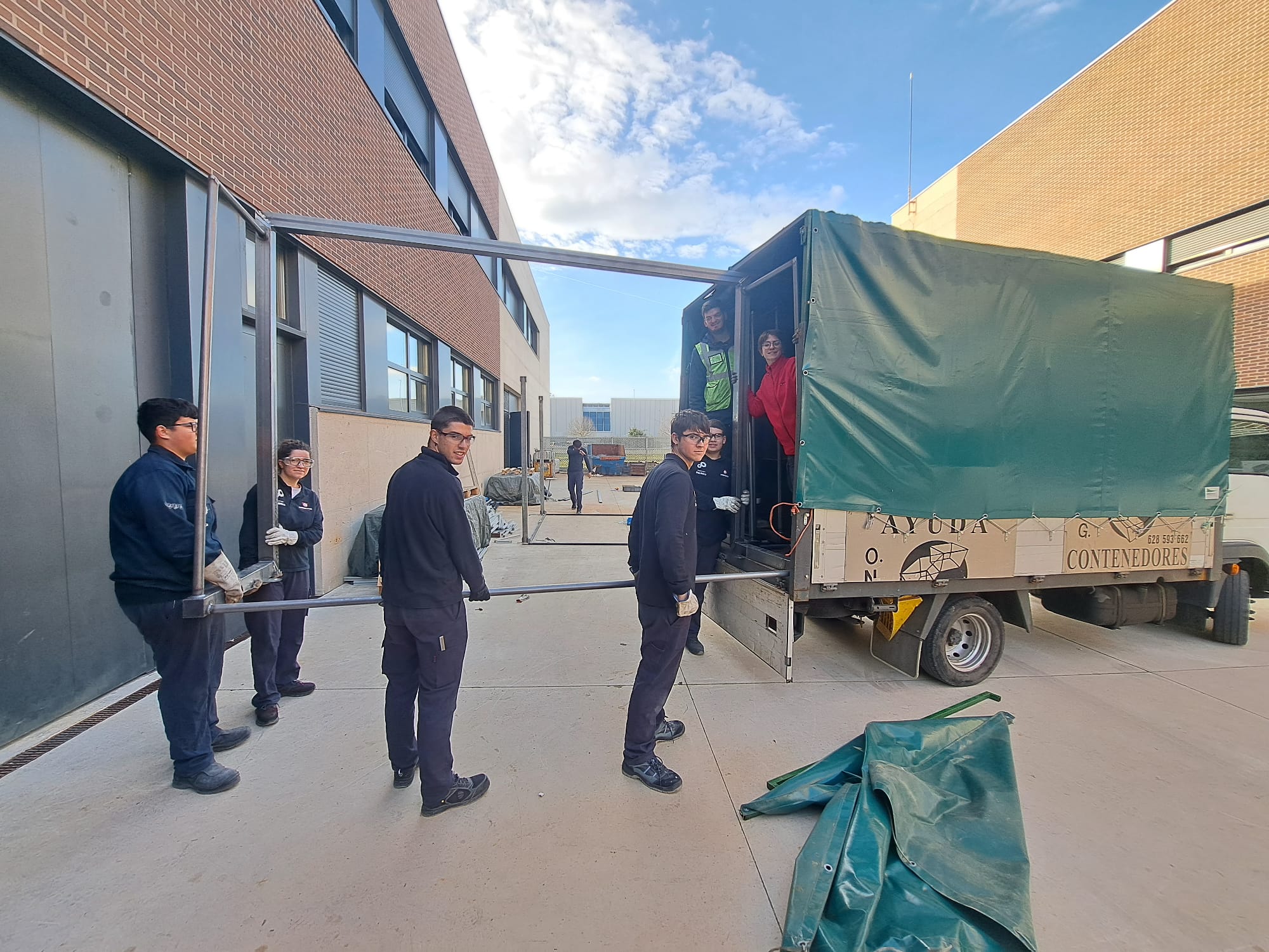El día 18 de diciembre de 2025 hemos recogido una nueva donación de otras cuatro porterías fabricadas en Salesianos. Un gran trabajo realizado por el alumnado a partir del material donado por Hierros Landaben.
