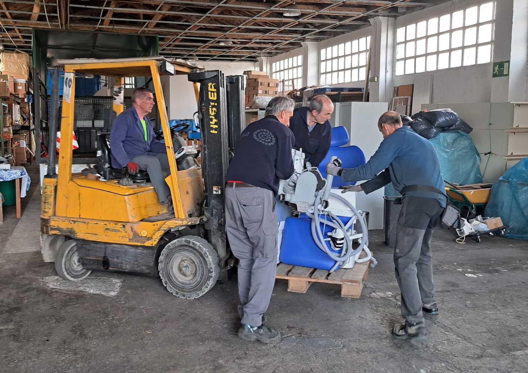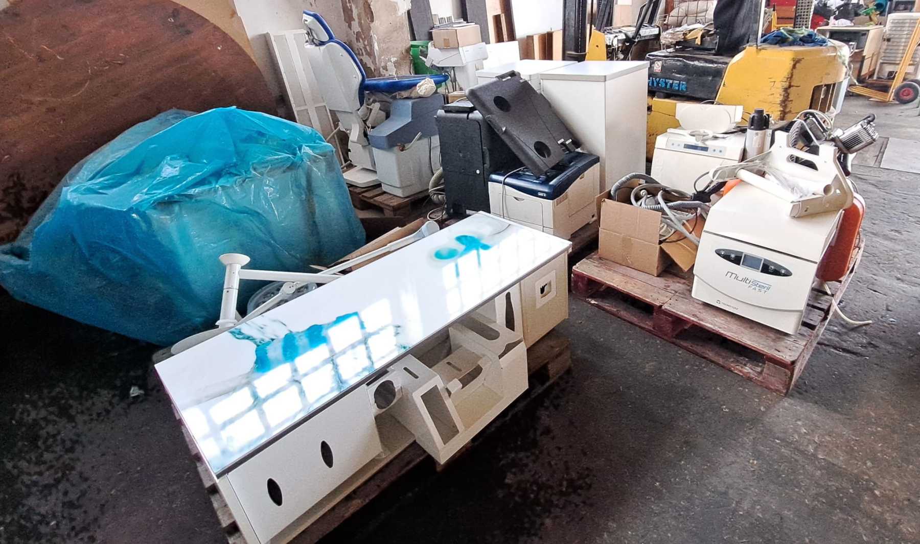 El día 6 de noviembre de 2024 nos hemos desplazado hasta la Clínica Dental Asensio Salazar, en Pamplona, para desmontar un extraordinario equipo de dentista y resto de equipamiento, compresor, aspirador, esterilizador y otros elementos
