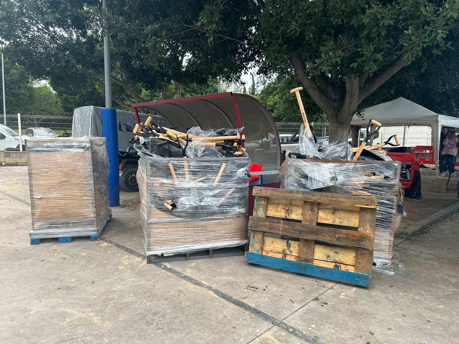 El día 3 de noviembre de 2024 nos hemos desplazado en nuestra furgoneta hasta Mislata, en Valencia, cerca de la zona azotada por la trágica dana, para entregar una dotación de 500 palas que nos fueron donadas por la empresa Bellota Herramientas de Legazpi.