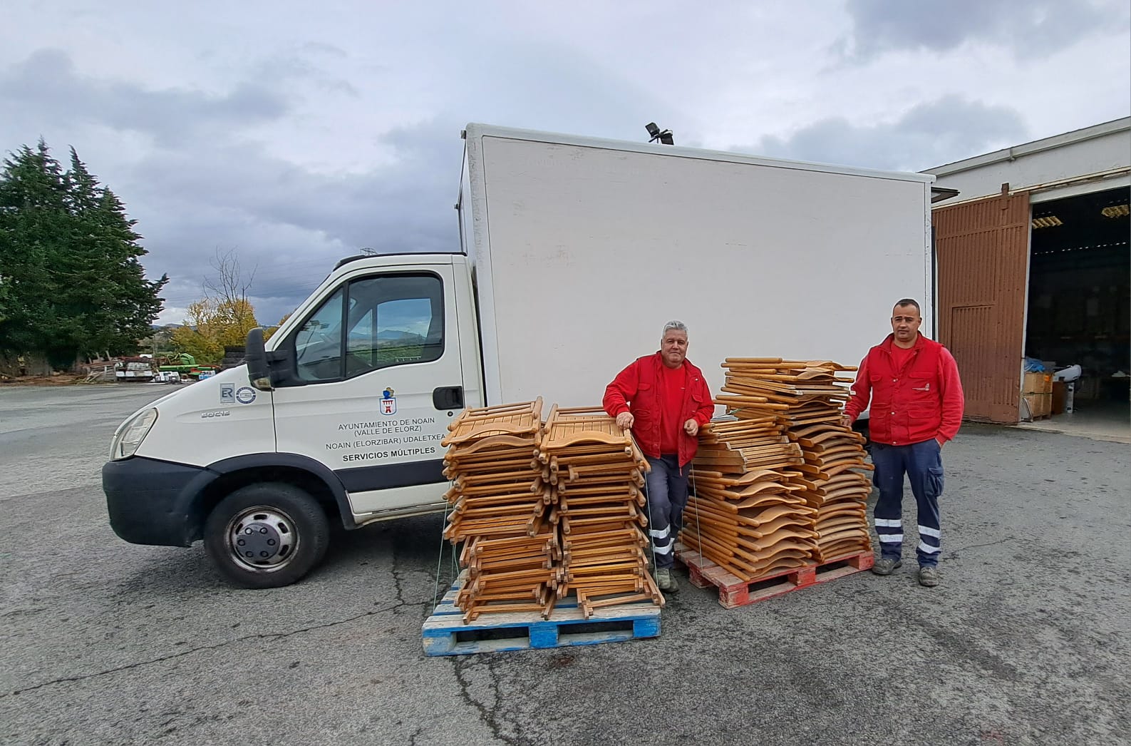 El día 20 de noviembre de 2024 hemos recibido la donación de 2 palés de sillas plegables que amablemente han traído hasta nuestras instalaciones los operarios del Ayuntamiento de Noáin (Valle de Elorz) en Navarra.