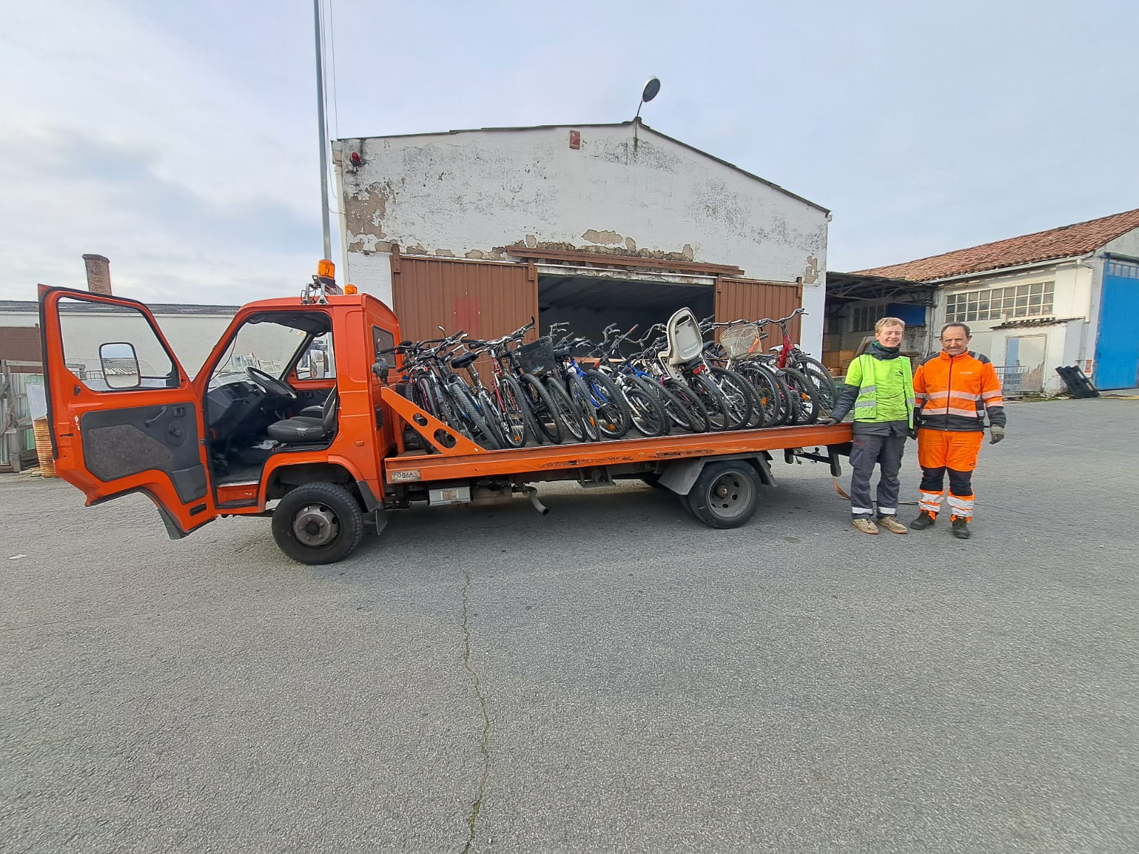 El día 12 de marzo de 2026 hemos recibido la donación de 121 bicicletas, que amablemente nos han traído hasta nuestras instalaciones los operarios del Ayuntamiento de Pamplona, a los que, como siempre, agradecemos su ayuda y colaboración.