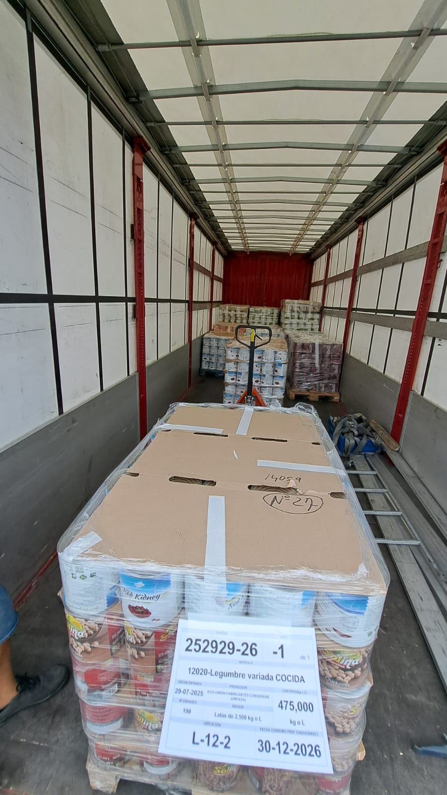 El día 18 de agosto de 2025 hemos recibido una donación procedente del Banco de Alimentos de Navarra consistente en 12 palés de diversos alimentos.