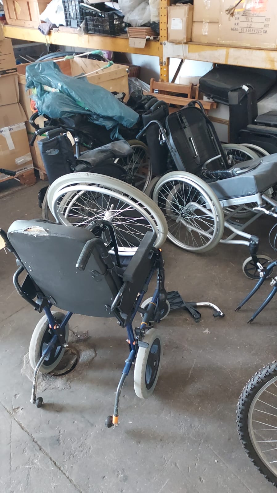 El 16 de abril de 2025 recogimos una donación del Centro de Atención Integral a la Discapacidad San José, de Pamplona, consistente en siete sillas de ruedas y dos andadores.