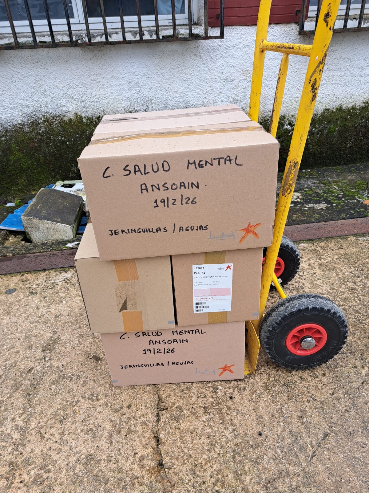 El día19 de febrero de 2026, hemos recogido la donación de un lote de 6 cajas de material quirúrgico del Centro de Salud Mental de Ansoain, de Atención Primaria del Gobierno de Navarra.