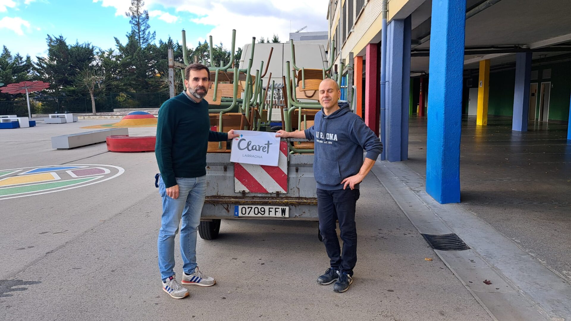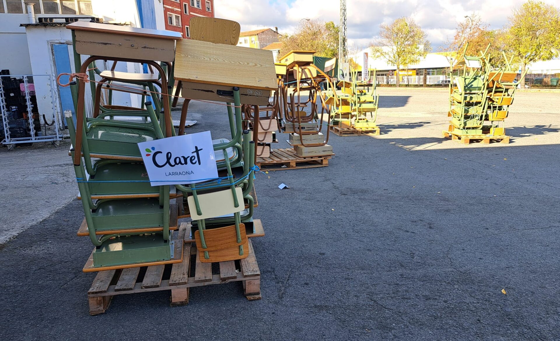 El día 12 de noviembre de 2024 hemos recogido del Colegio Claret Larraona de Pamplona, una donación de 35 pupitres