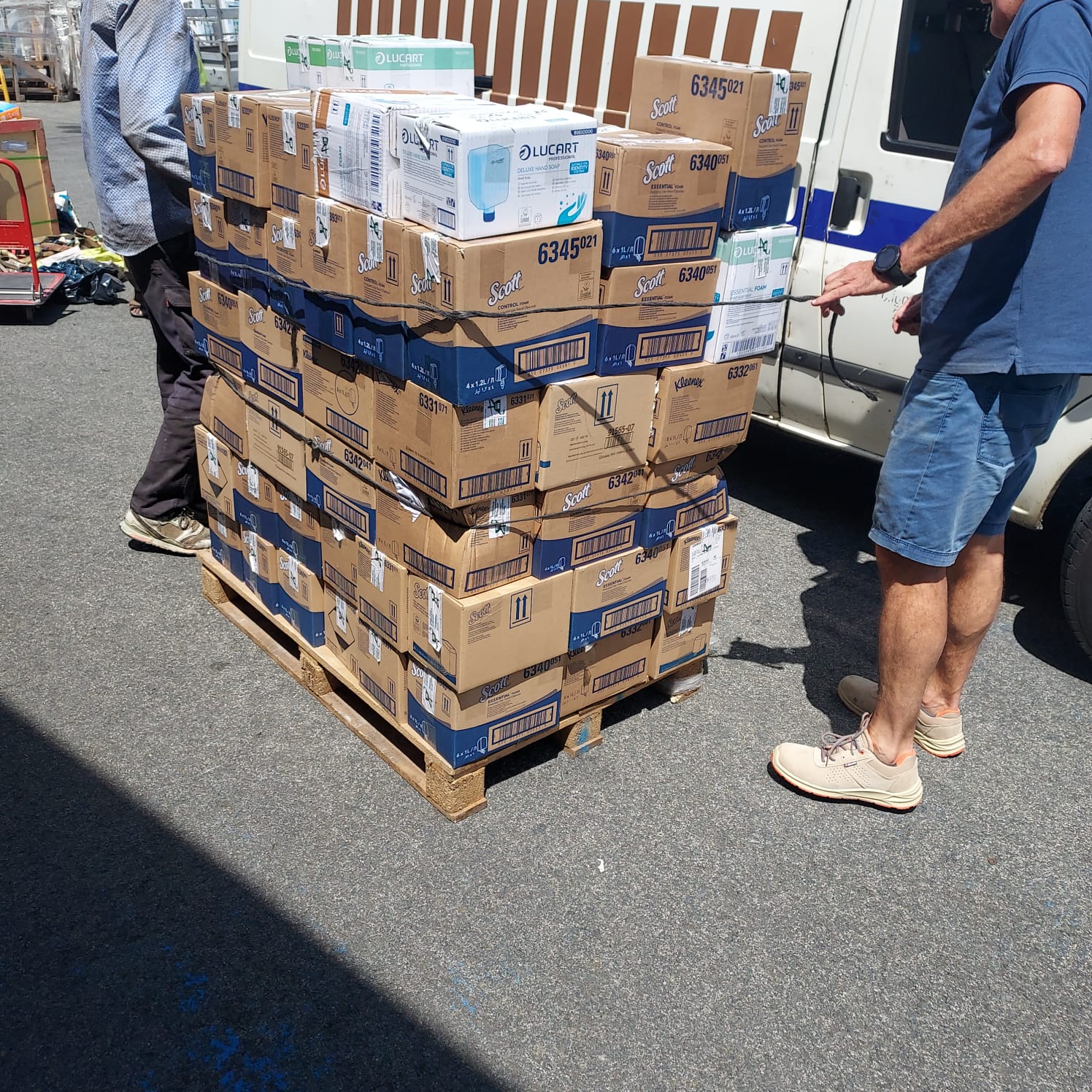El día 15 de julio de 2025 nos desplazamos hasta Donostia pata recoger una donación del Colegio de Farmacéuticos de Gipuzkoa consistente en 552 botes de jabón.