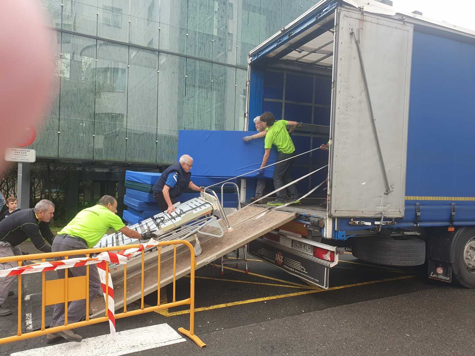 El día 22 de octubre de 2024 un equipo de voluntarios nos desplazamos hasta San Sebastián para recoger una nueva donación procedente del Hospital Universitario de Donostia, consistente en 61 camas, una camilla y tres sillas de ruedas, que tendrán como destino Ucrania.