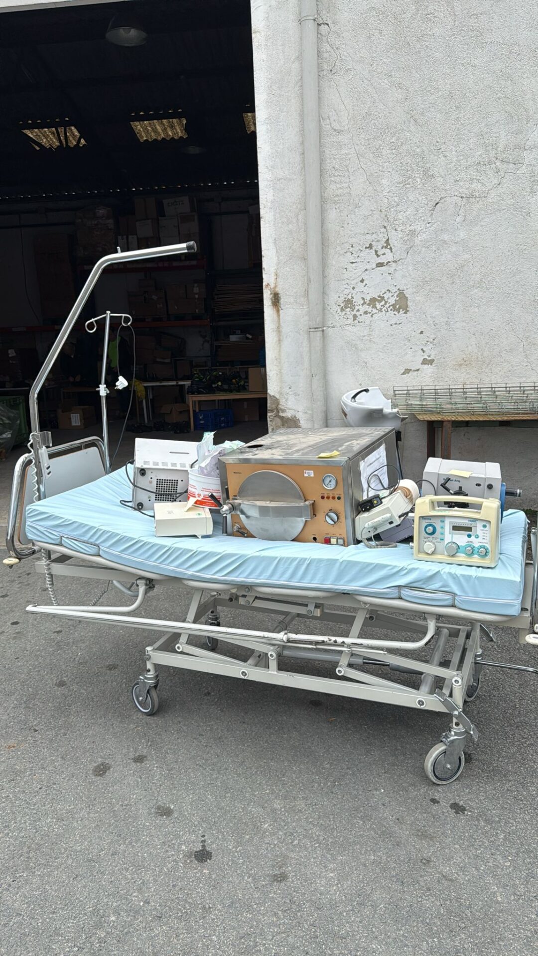 El día 7 de marzo de 2025 hemos recogido del Hospital Universitario de Navarra una donación de una cama y un autoclave.