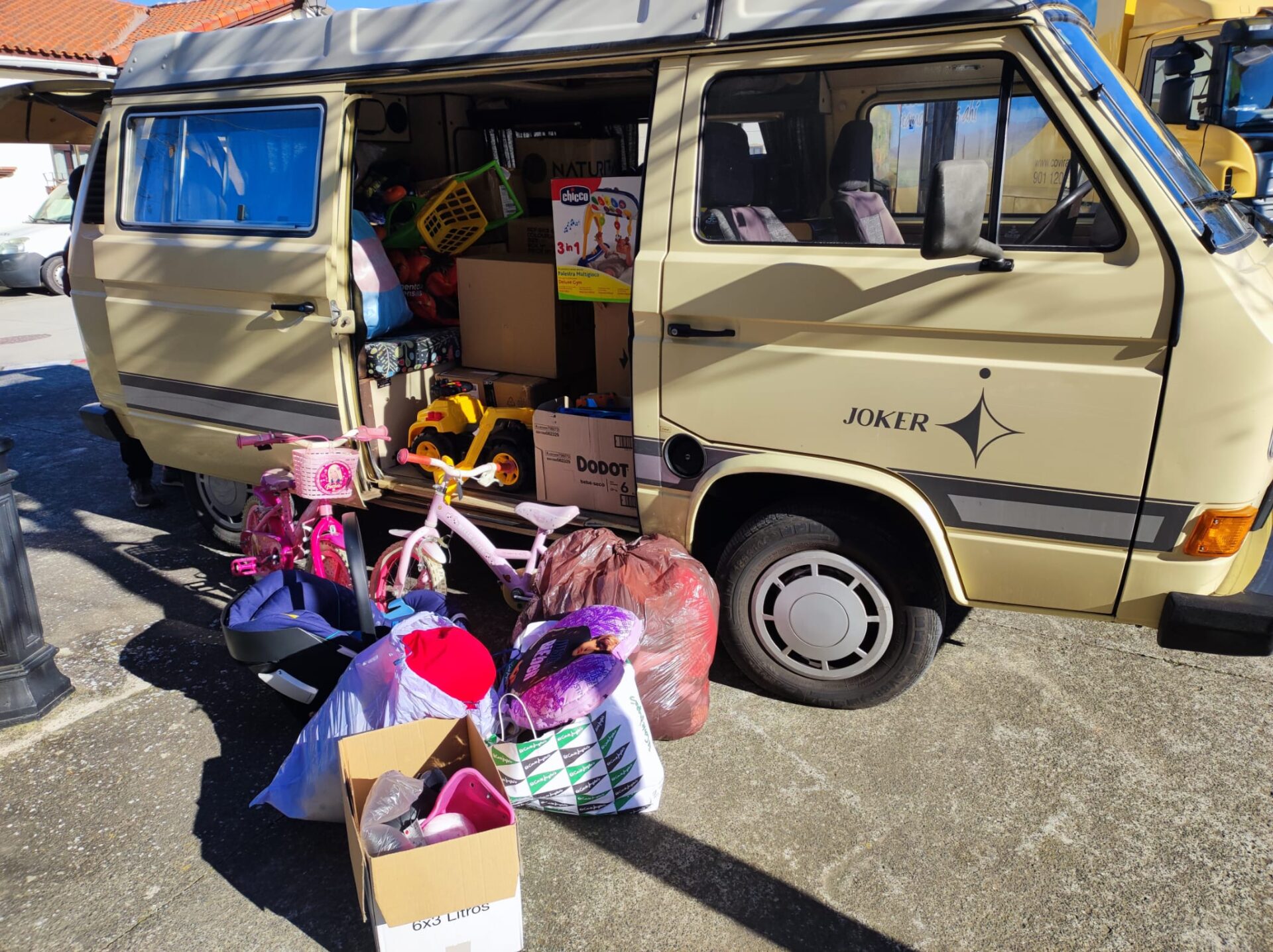 El día 14 de enero de 2025 hemos recogido en Tiebas (Navarra) una donación de ropa, zapatos, juguetes, bolsos, libros y otros materiales en perfecto estado, procedentes del mercadillo solidario celebrado en dicha localidad el pasado 15 de diciembre 2024, y cuyos fondos obtenidos fueron igualmente donados para ayudar en diversos proyectos solidarios y de cooperación.
