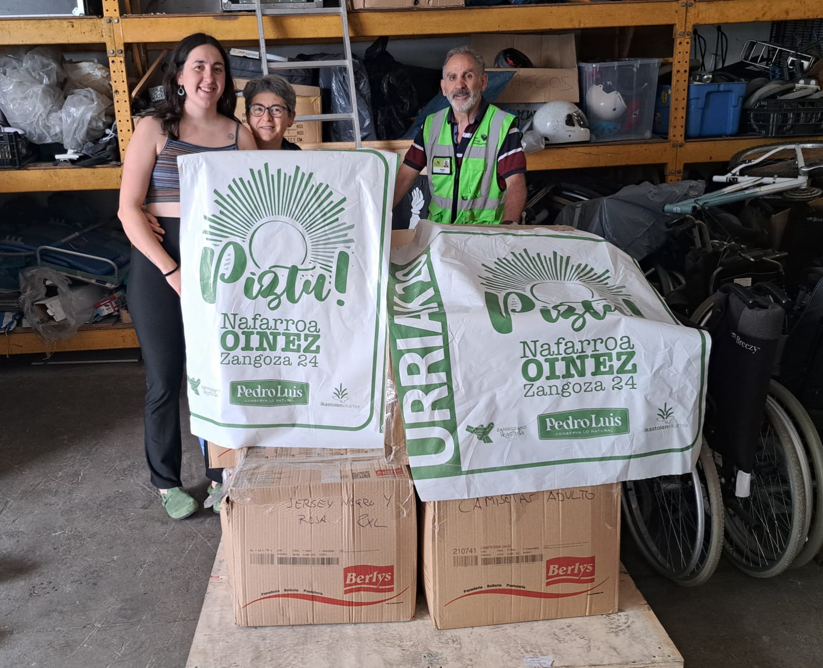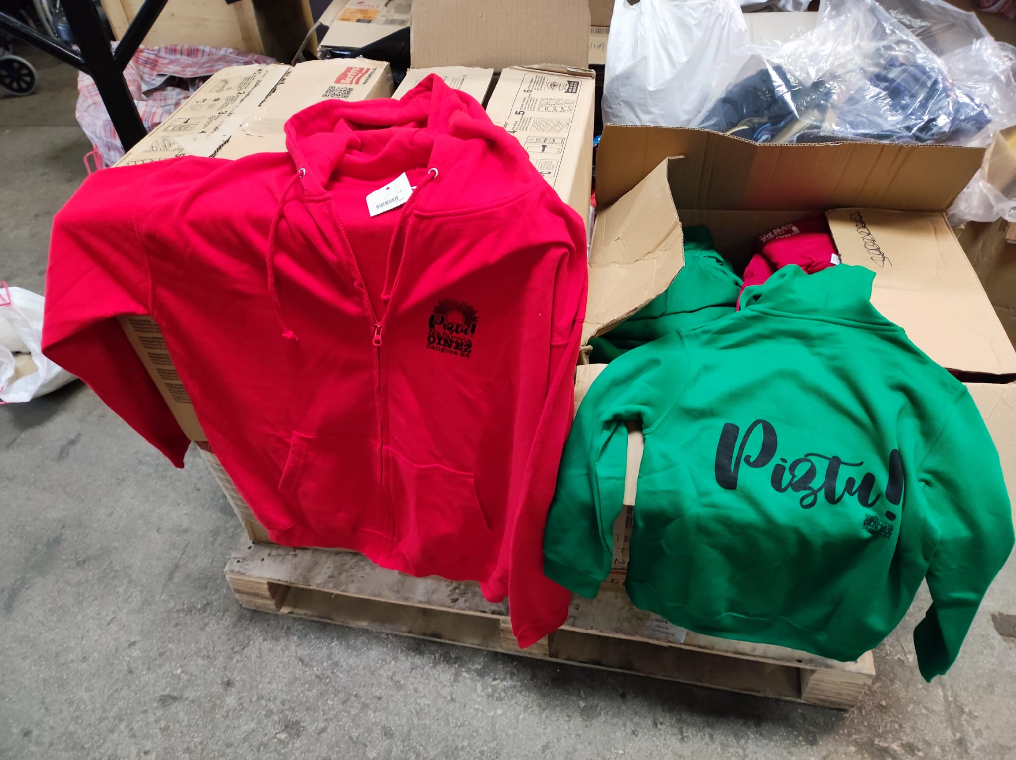 El día 3 de junio de 2025 hemos recibido en nuestras instalaciones un palé con 10 cajas de ropa procedente del Nafarroa Oinez 2024 celebrado en Sangüesa.