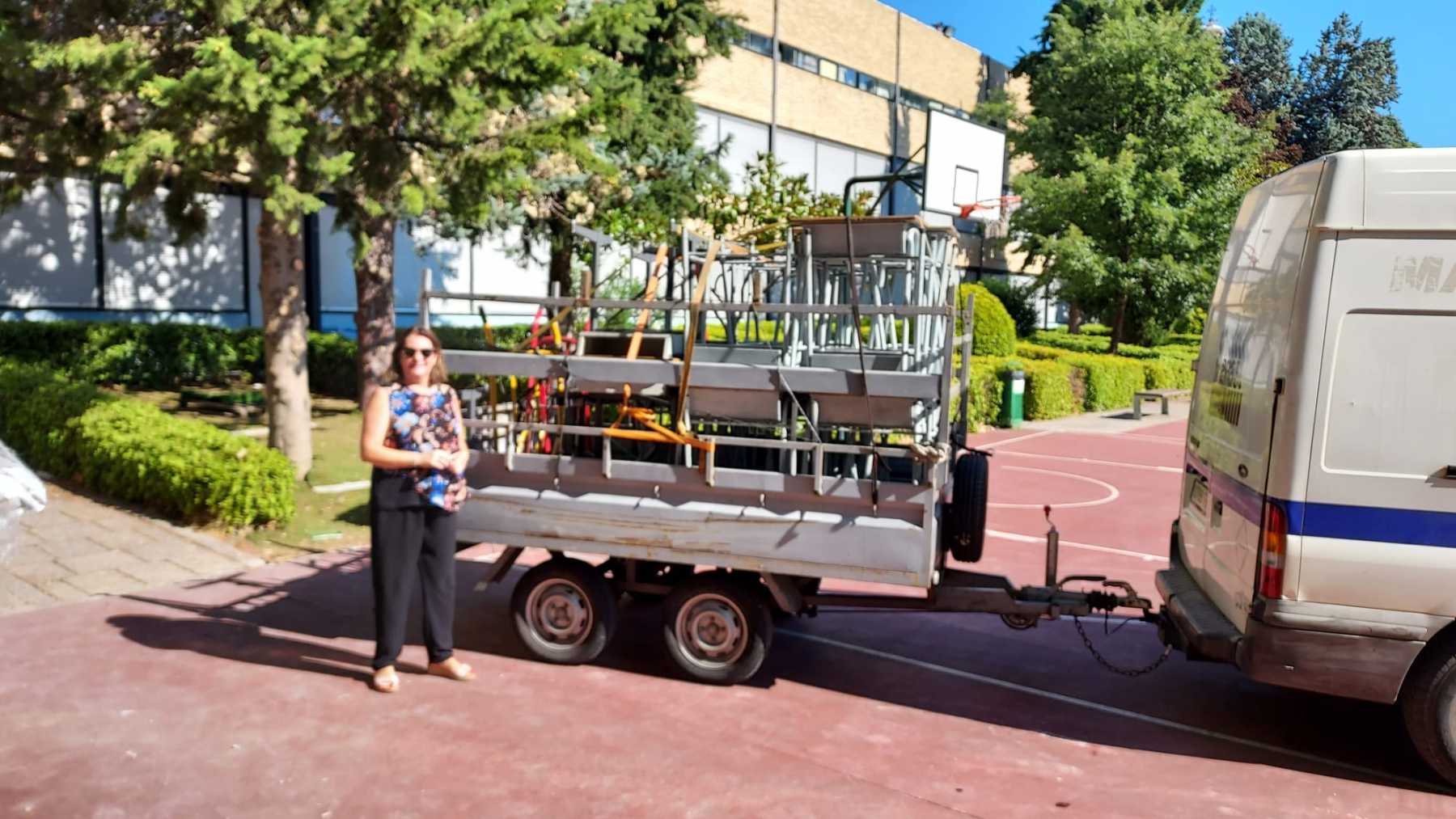 El día 2 de agosto de 2022 hemos recogido del Colegio Dominicas de Villava la siguiente donación: 188 sillas, 86 pupitres.