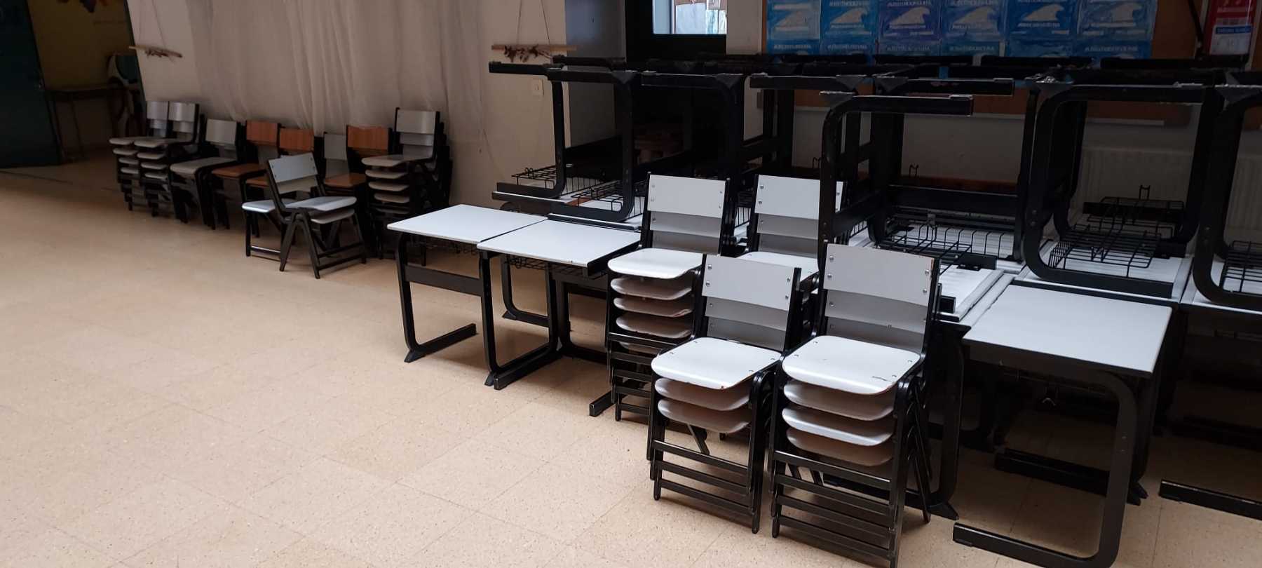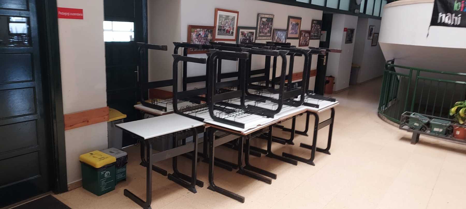 El día 13 de abril recogimos en Azkoitia pupitres y sillas donadas por Floreaga Ikastetxea.