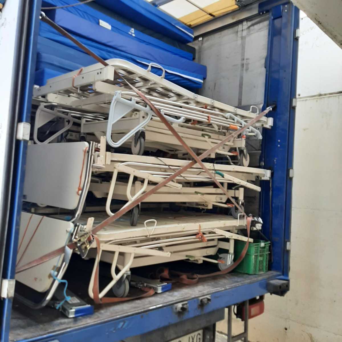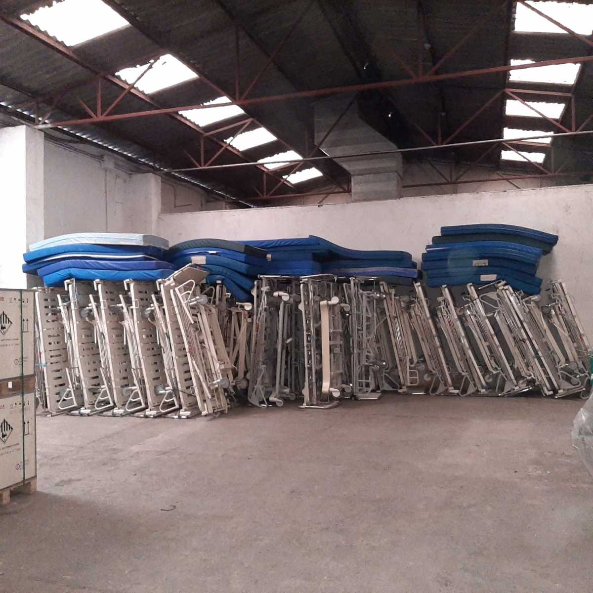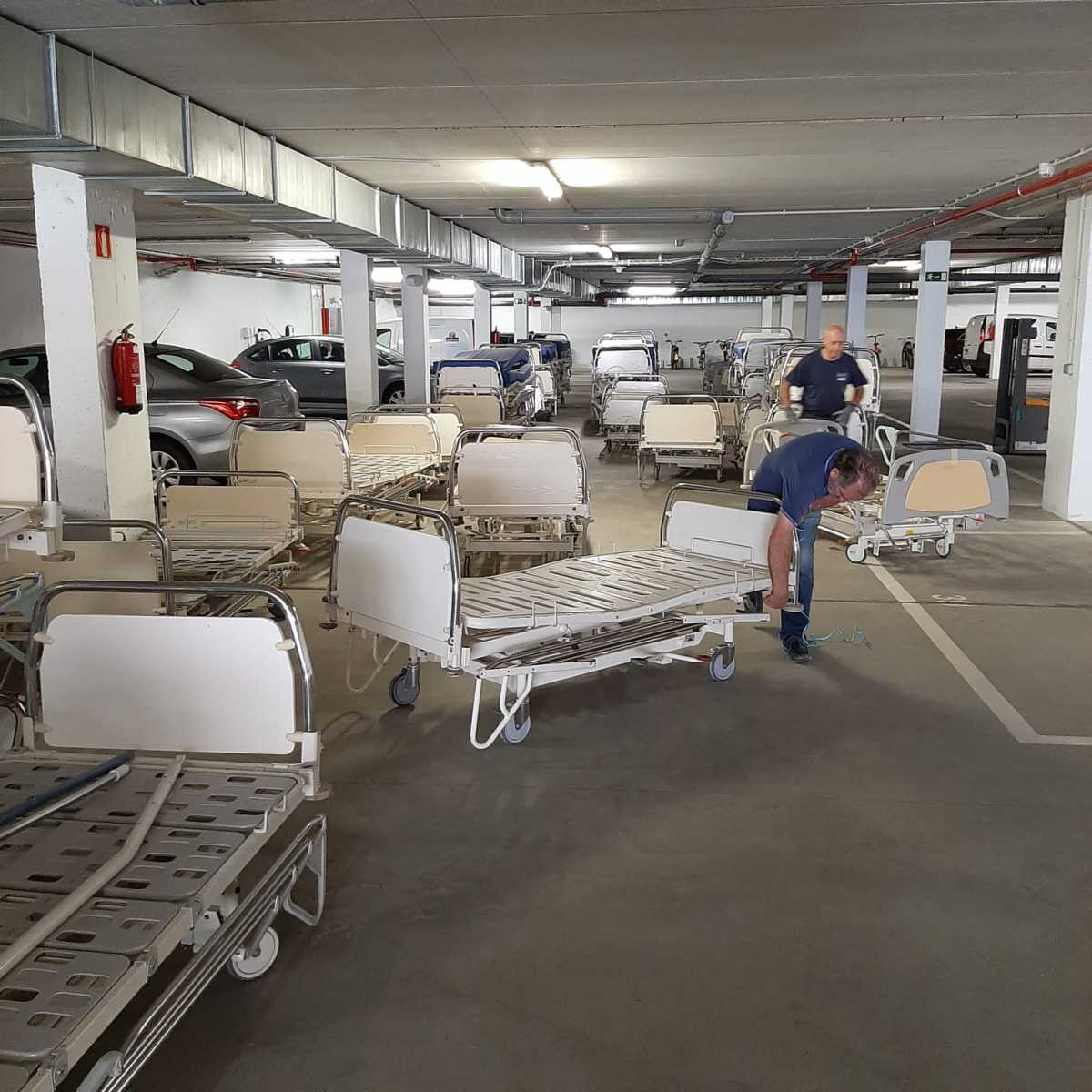 70 camas de hospital, 65 colchones, 4 butacas de acompañantes y 16 camillas de masaje.