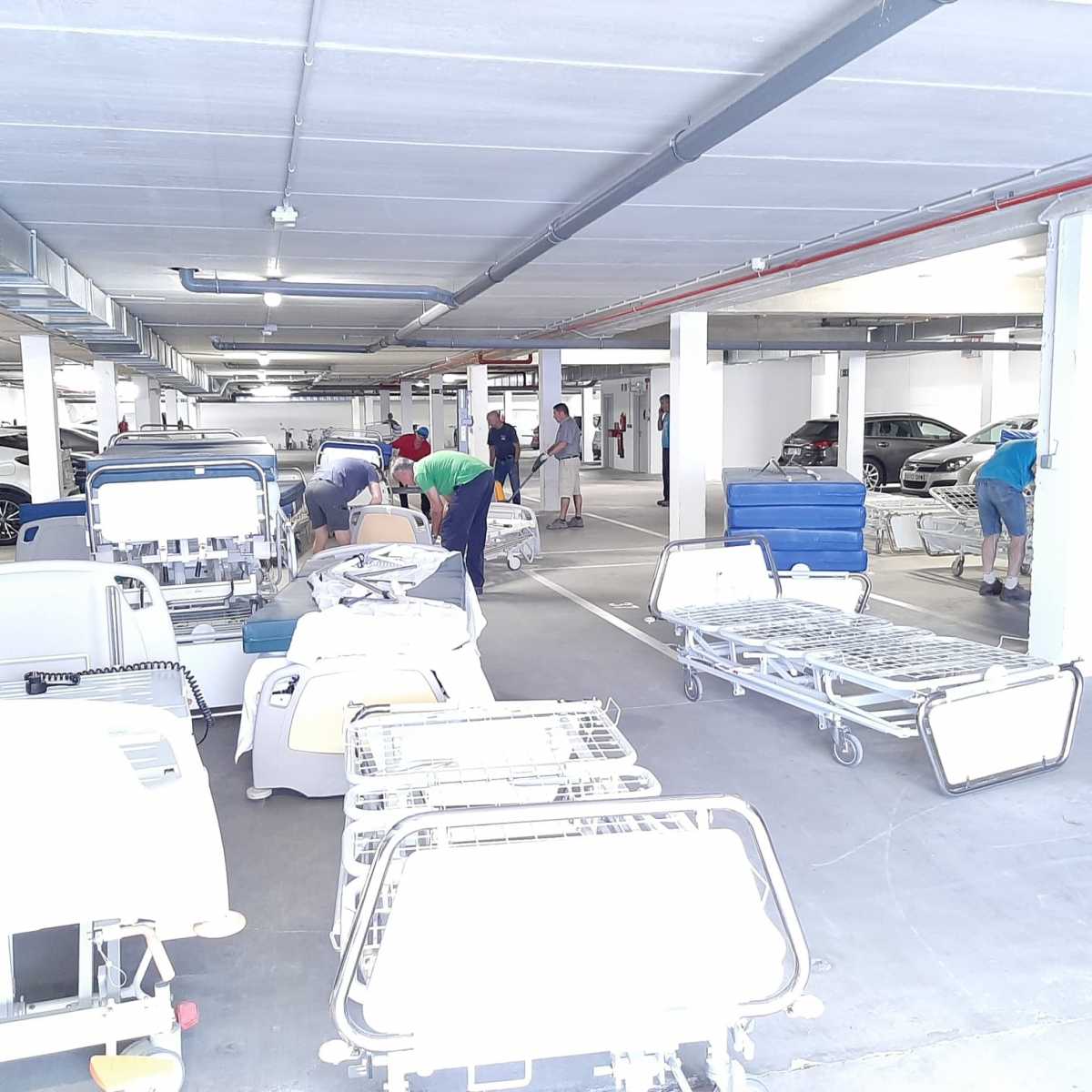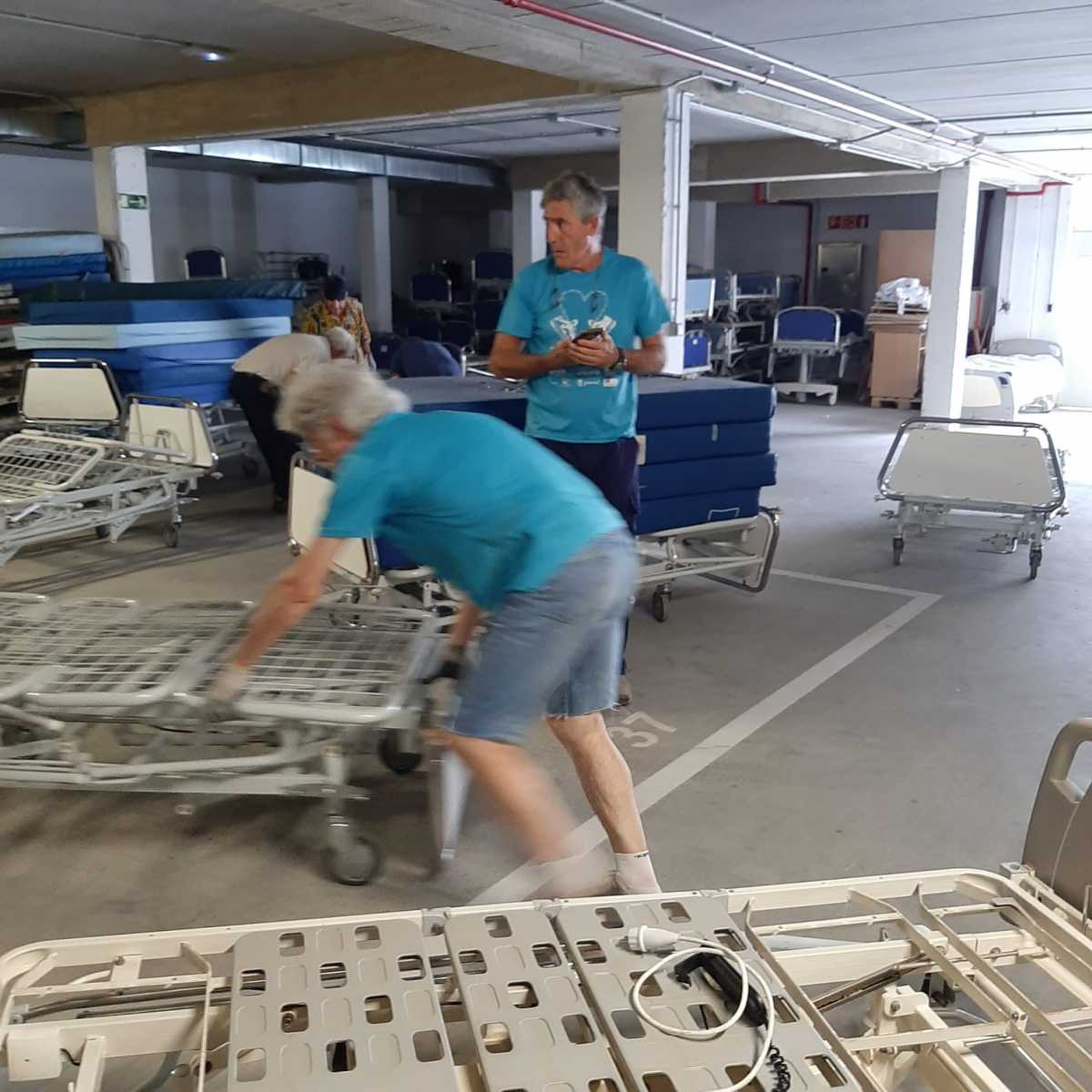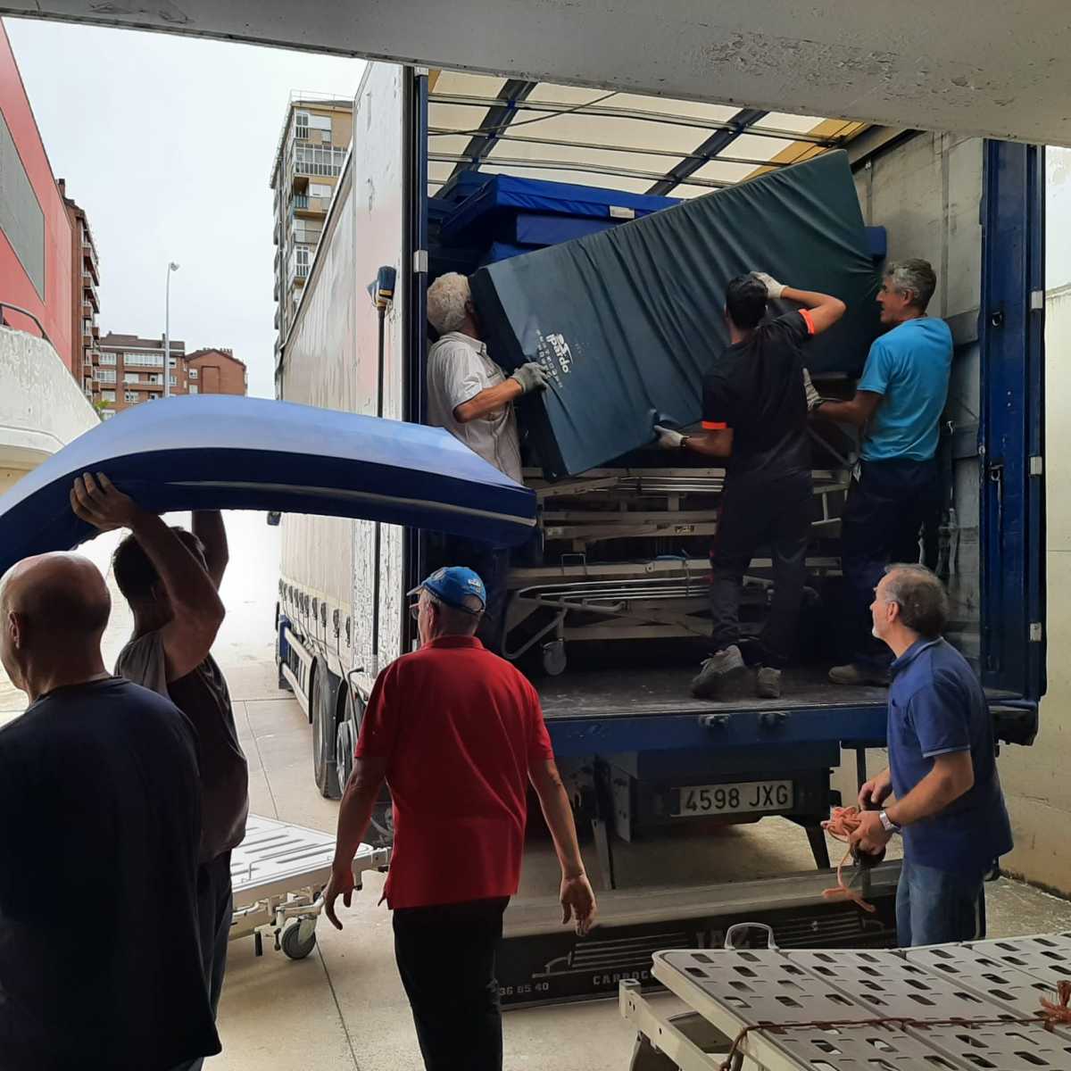 70 camas de hospital, 65 colchones, 4 butacas de acompañantes y 16 camillas de masaje.