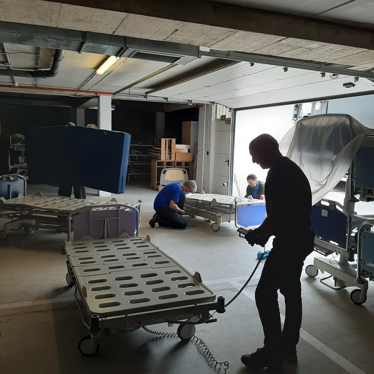 El 24 de mayo hemos estado en Vitoria-Gasteiz recogiendo unas 60 camas de hospital donadas por el Servicio Vasco de Salud-Osakidetza.